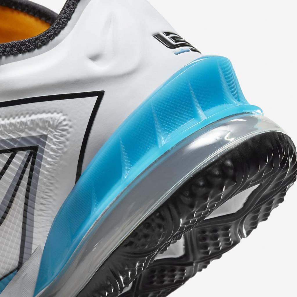 En Max Air-enhed under hælen giver stødabsorbering for store, stærke spillere som LeBron. Den er kombineret med Nike React-teknologi i fuld længde til flydende overgange og responsivitet.