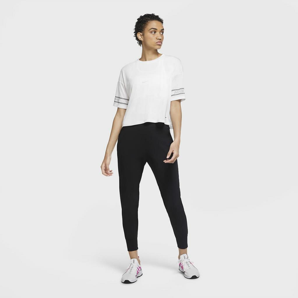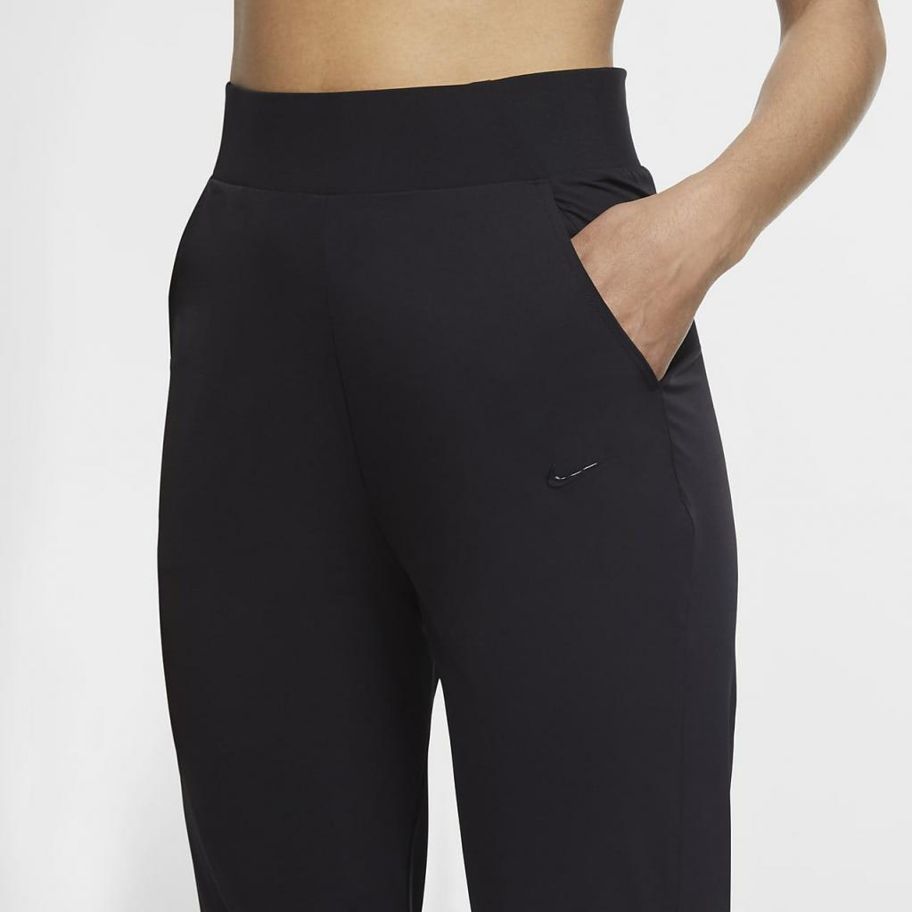 Nike Bliss Luxe-bukserne er lette og fleksible med svedtransporterende teknologi, der sørger for, at du kan bevæge dig komfortabelt under din træning. Det superbløde design har en mellemhøj talje og manchetter ved anklerne for at holde dem faconsyede.