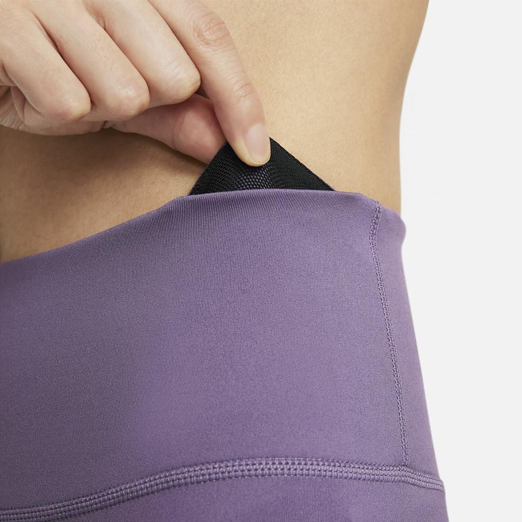 Nike One-leggingsene være din favorit, uanset om du træner på måtten eller løber ærinder. Disse bløde leggings er fremstillet med svedtransporterende teknologi og mindst 50% genanvendte polyesterfibre, der hjælper med at holde dig tør. Og med ugennemsigtigt materiale kan du trygt lave squats. Linningen går til under navlen og har to skjulte lommer til mindre musthaves. Der er endda en lomme bagpå, der er stor nok til din telefon, så du er klar til hvad som helst.