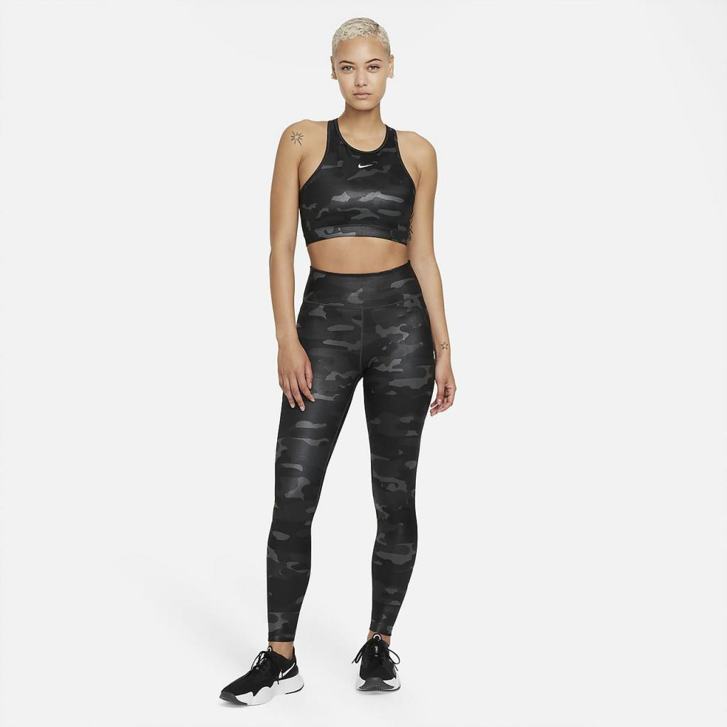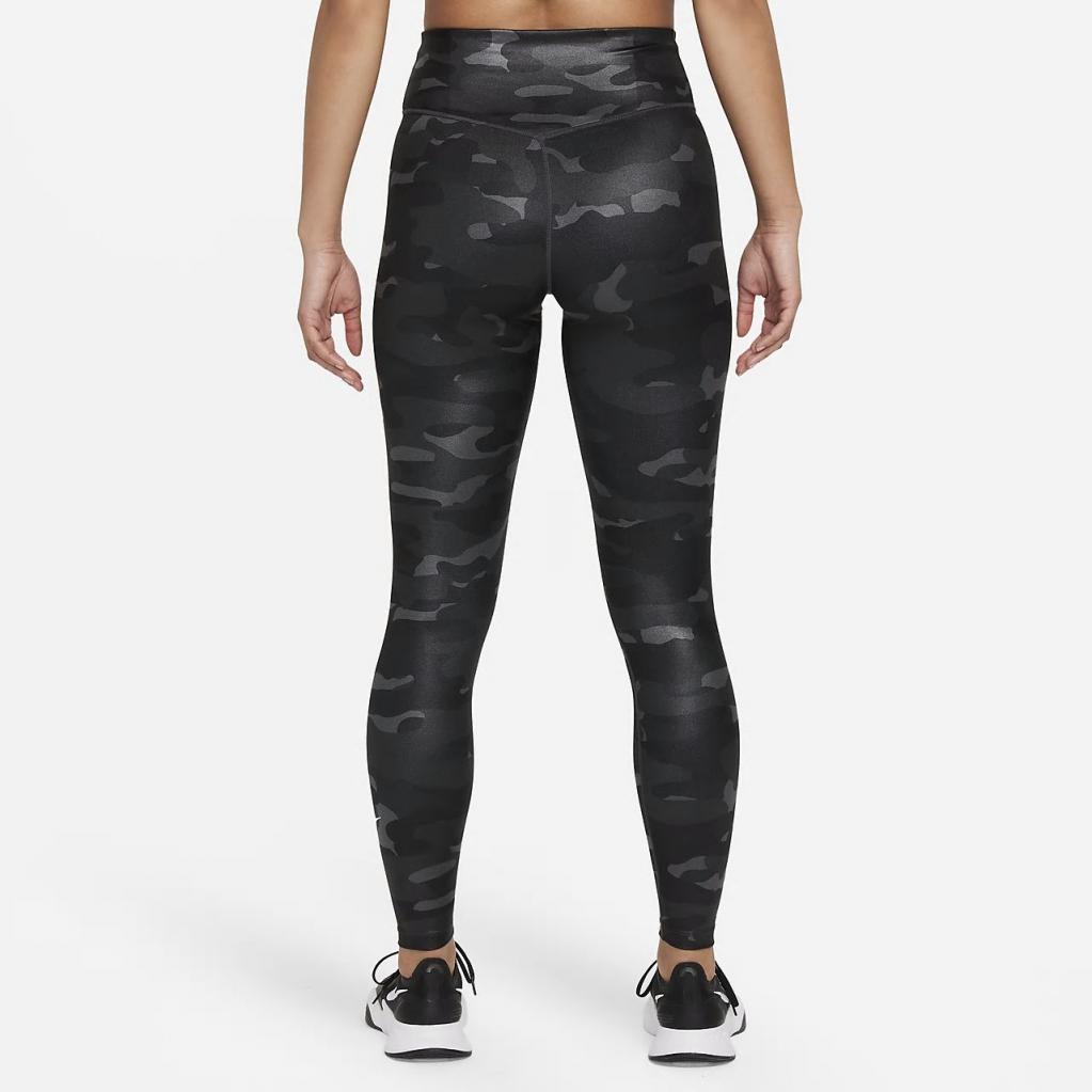 Nike Dri-FIT One-leggingsene er super-alsidige til enhver form for træning eller når som helst. Det behagelige design transporterer sveden væk for at holde dig tør. Og materialet er ikke gennemsigtigt, så du kan føle dig selvsikker og tildækket. Skinnende materiale med camoprint skaber et flot skær.