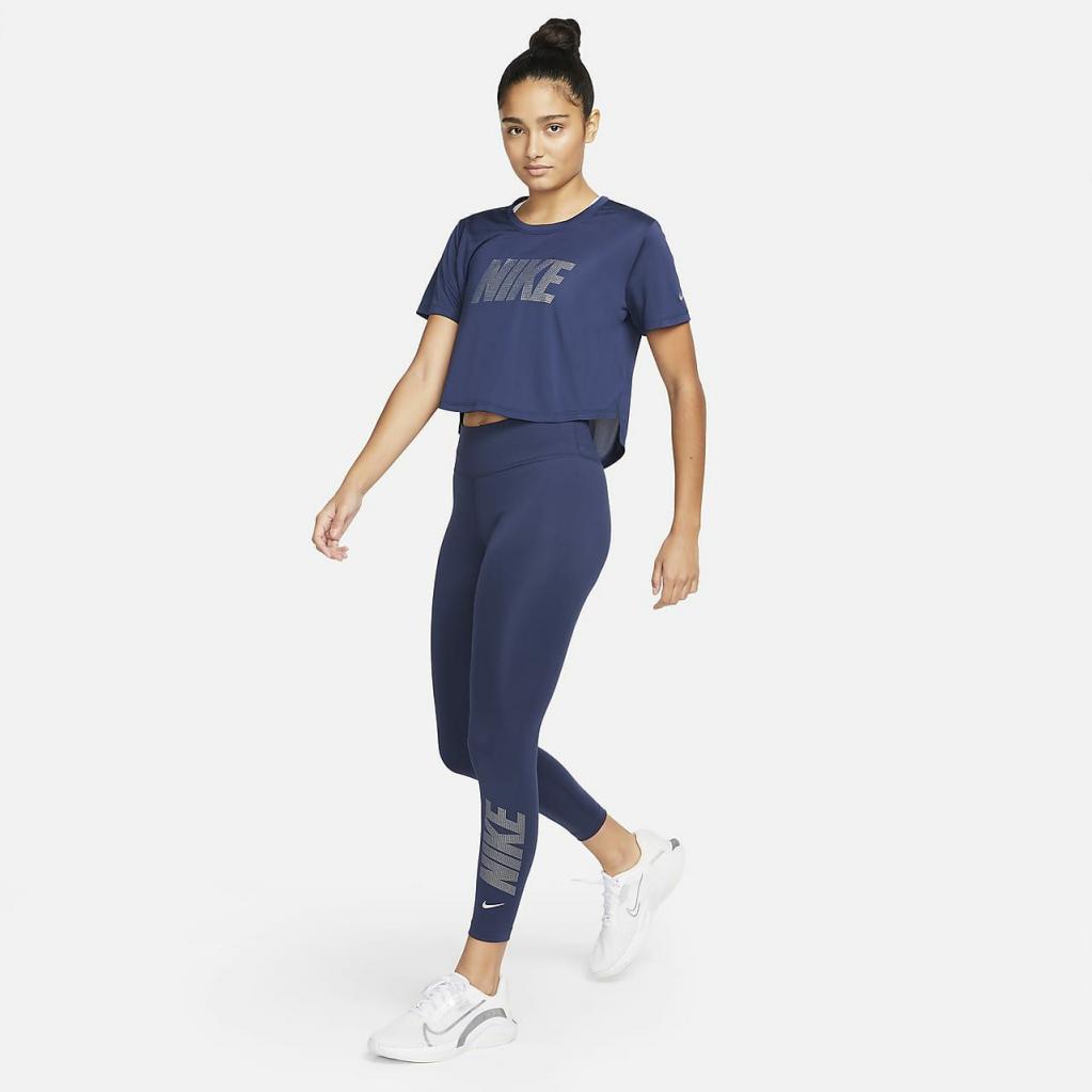 Disse Nike Dri-FIT One-leggings er klar til træning eller nedkøling og har finish med imiteret rhinsten, der skaber et funklende look.Det behagelige design transporterer sveden væk for at holde dig tør.Desuden er materialet uigennemsigtigt, så du kan føle dig selvsikker og tildækket.Dette produkt er fremstillet med mindst 50% genanvendte polyesterfibre.