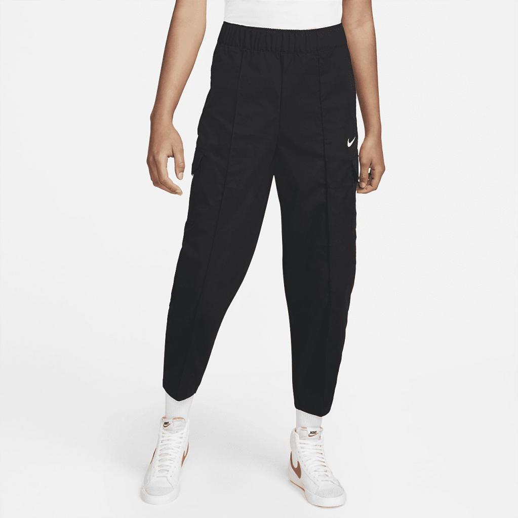 Den højtaljede pasform har en elastisk linning, der går til navlen.De er rummelige ved hofterne og lårene og har afkortede ben med ekstra faconsyning for neden, hvilket giver et rent look, der hjælper dine sneakers med at skinne.