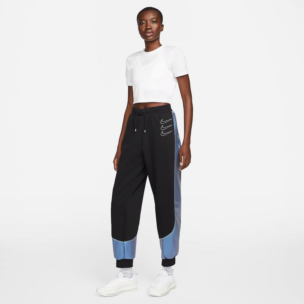 Det tredobbelte Swoosh-logo er fremstillet i en farvestrålende film, der tilføjer præcis den rette mængde glans til dette behagelige fleecelag.