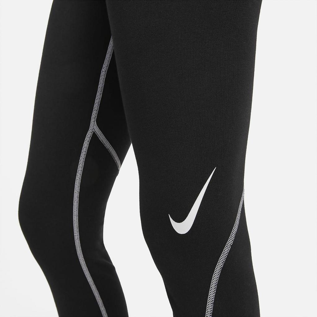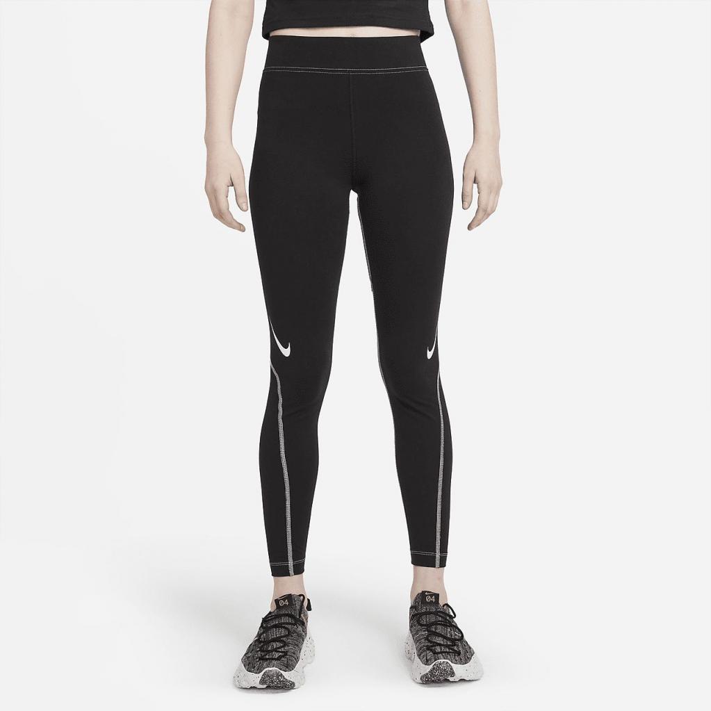 Træd ind i Nike Sportswear Swoosh-leggings for at bringe en konkurrencelignende kant til din hverdagsstil. Lavet af et blødt strikstof, vil du helt sikkert bruge disse ofte. Det højtaljede design krammer din krop, og elastisk stof bevæger sig med dig hele dagen. Med et spejlvendt Swoosh-design over knæet, kan du fuldende dit sporty look med din favorit T-shirt og sneakers.