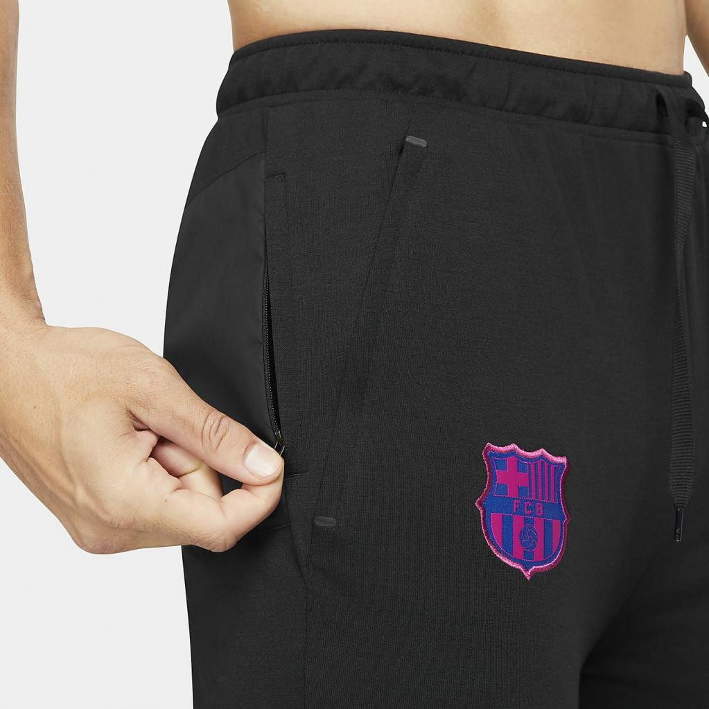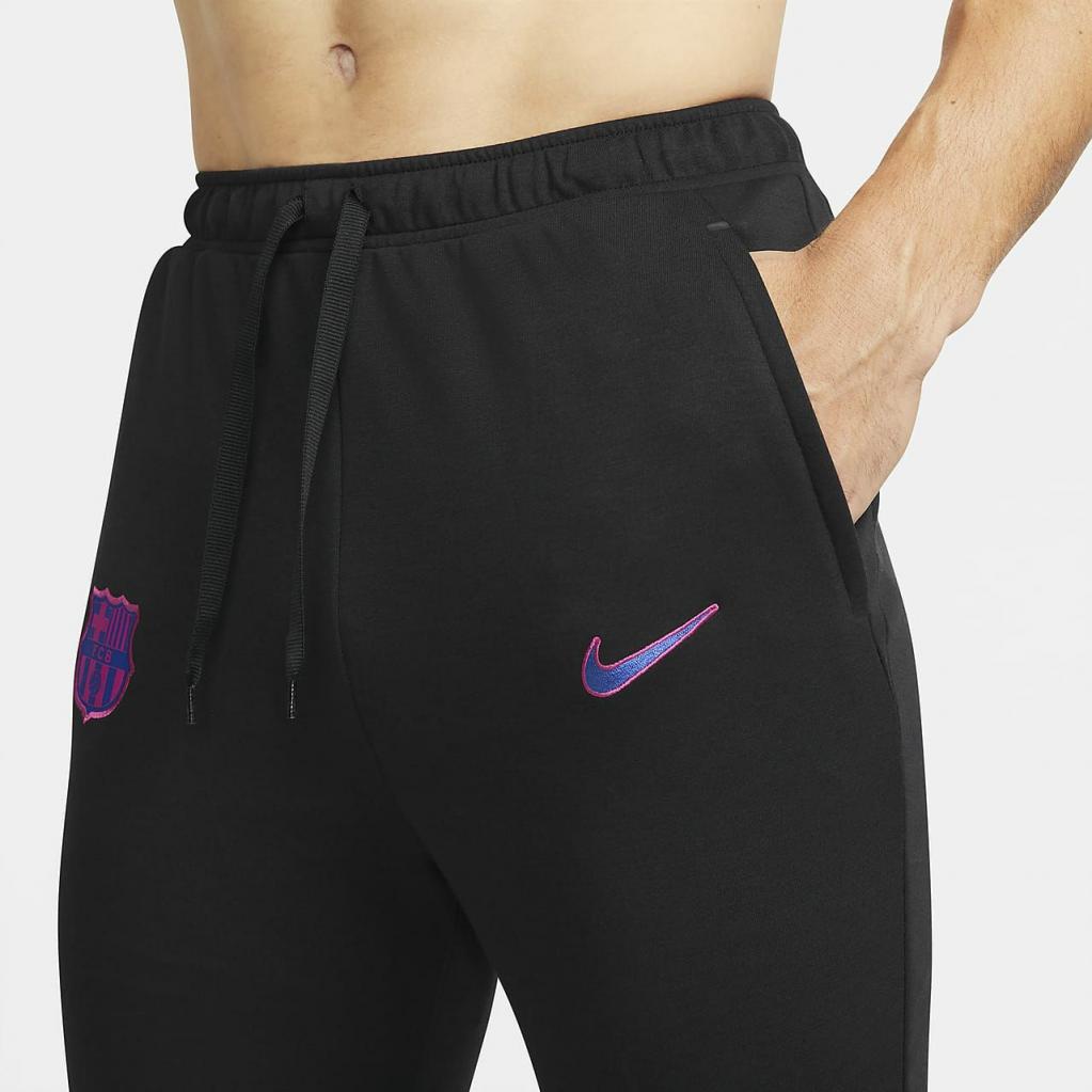 FC Barcelona-bukserne, der er inspireret af de professionelles spillertrøje, kombinerer den bløde, lette, svedtransporterende fornemmelse af sportstøj med streetwear-flair.Et faconsyet design giver en strømlinet fornemmelse, og et vævet holdemblem lader dig vise din Barca-stolthed.