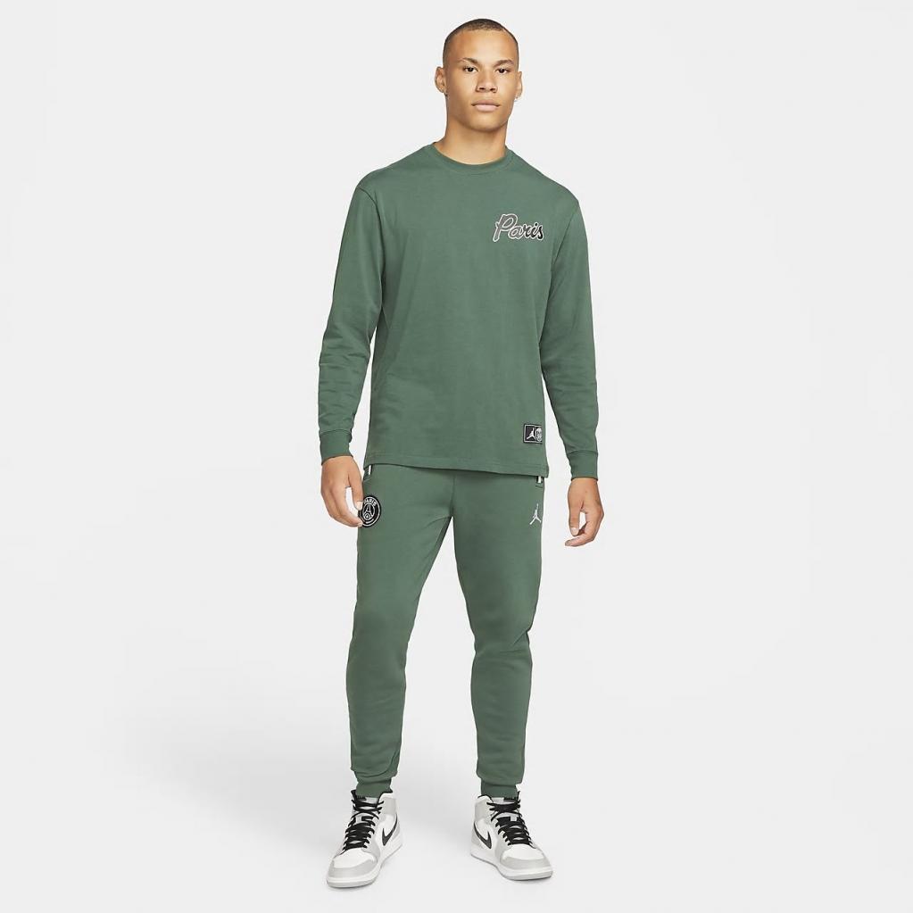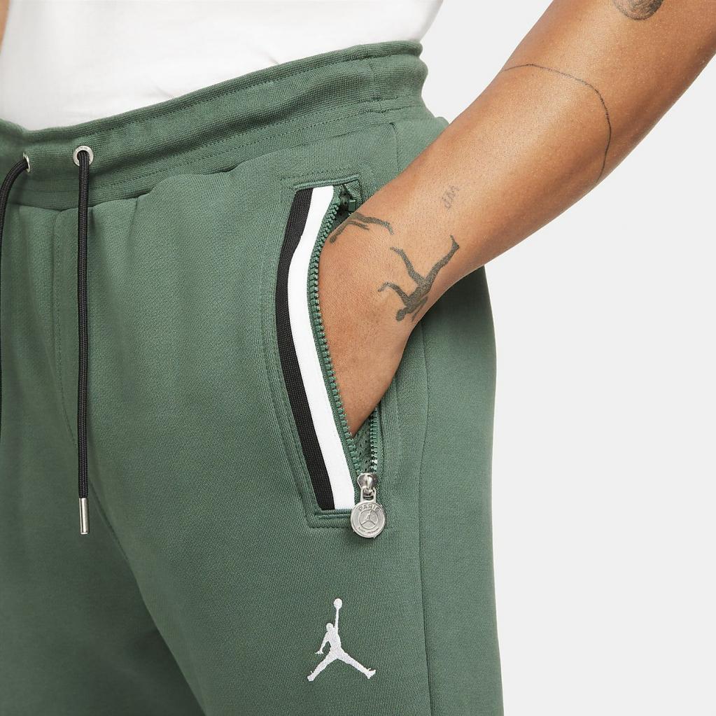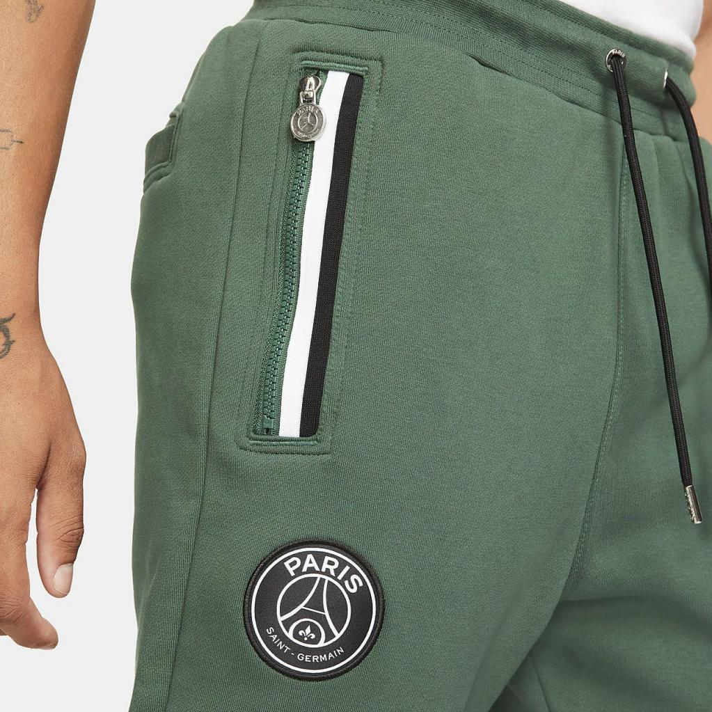 "ICI C’EST PARIS"-grafik (Her er Paris) bag på indersiden af linningen og et påsyet Paris Saint-Germain x Jumpman-emblem fremhæver samarbejdet. Metalender med snoretræk, eyelets og lynlåsetapper er brandet med Paris Saint-Germain og Jordan-detaljer.