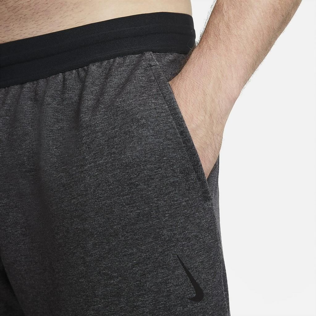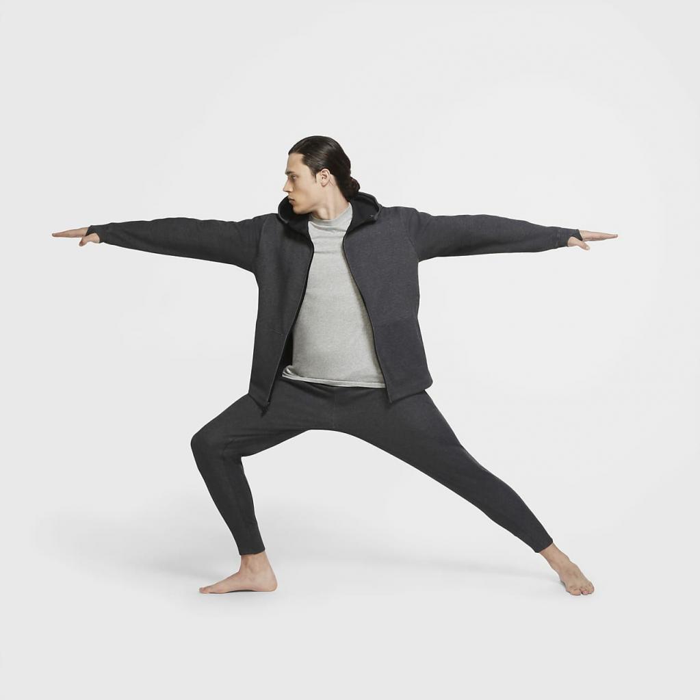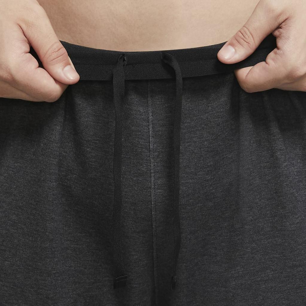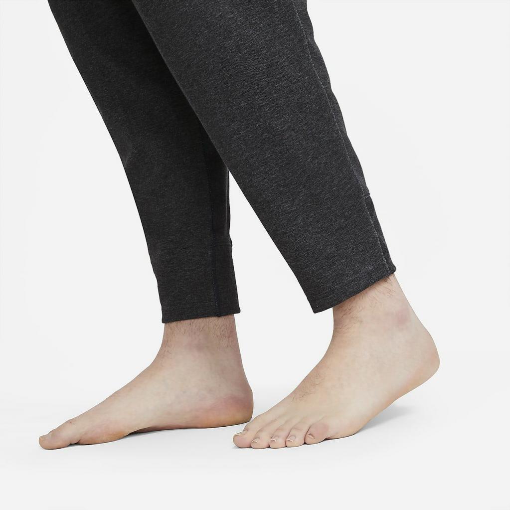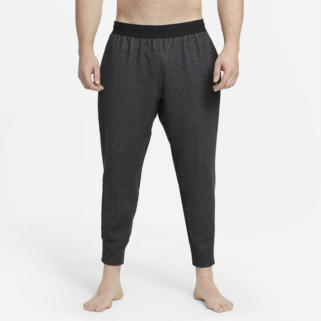 Nike yoga-bukserne giver dig et let, behageligt lag til måtten. Det bløde materiale strækker sig omkring taljen og anklerne, og holder sig på plads, når du bevæger dig. Dette produkt er fremstillet med mindst 75% bæredygtige materialer, der består af en blanding af både genanvendt polyester og økologiske bomuldsfibre. Blandingen består af mindst 10% genanvendte fibre eller mindst 10% økologiske bomuldsfibre.