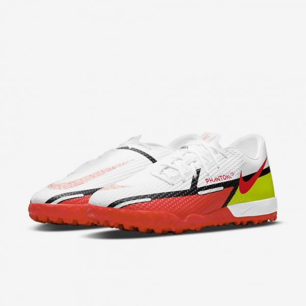 Nike Phantom GT2 TF er skabt på Phantom GT og har et opdateret design og mønster, der er specialudviklet til at hjælpe dig med at placere dine skud med præcision.Skæve snørebåndslukninger giver en ren strike-zone, som hjælper dig med at drible, aflevere og score med præcision.
