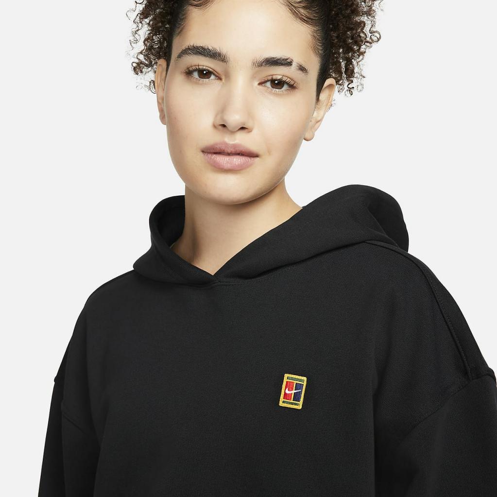 Flerfarvet NikeCourt-mærke på brystet hylder Nikes arv.