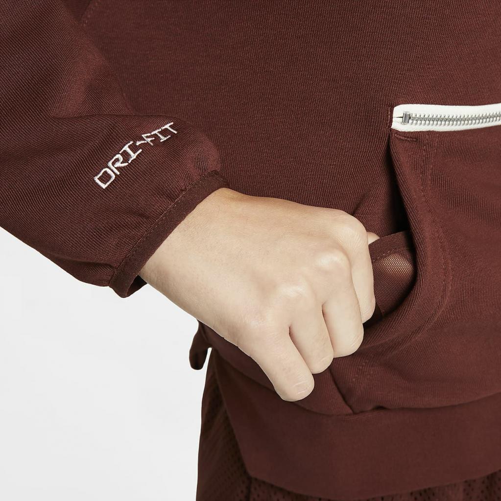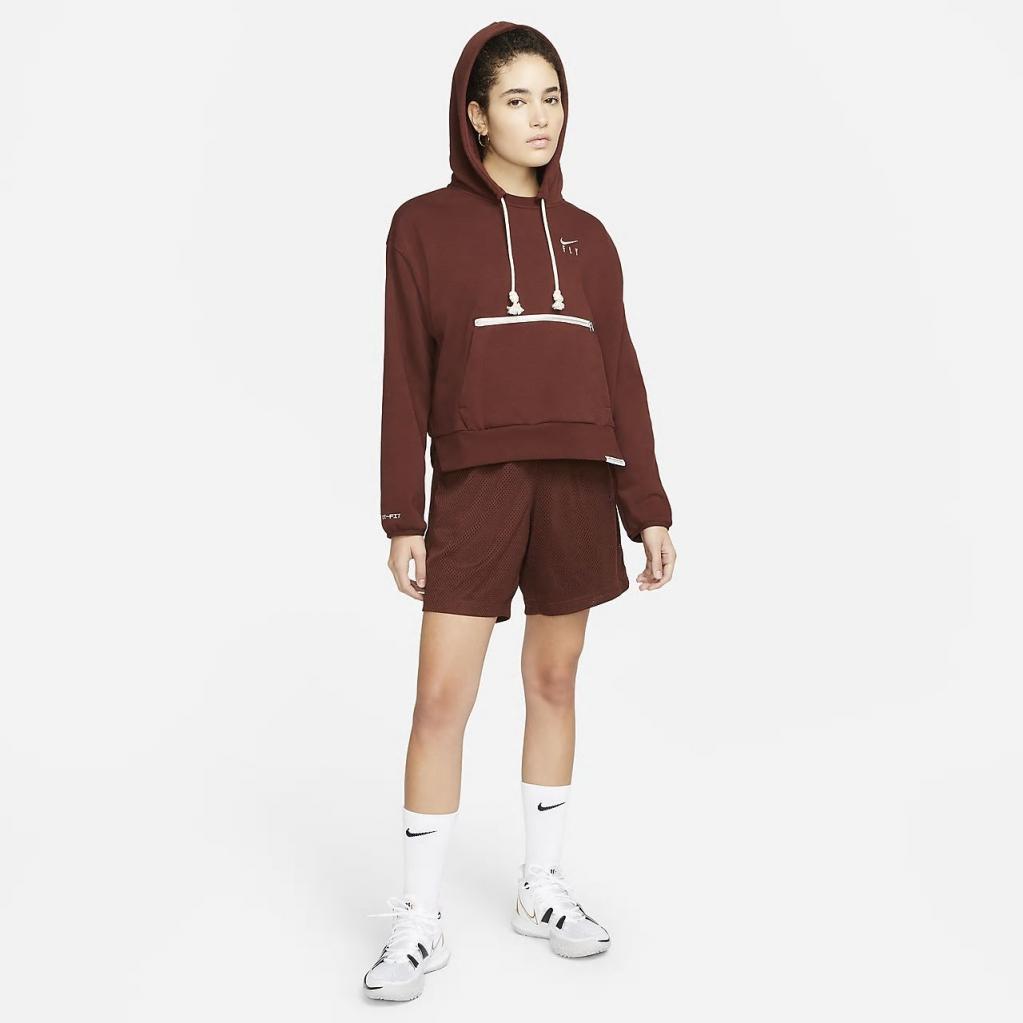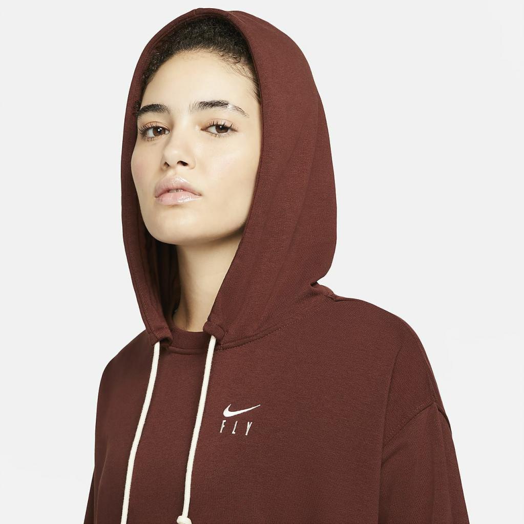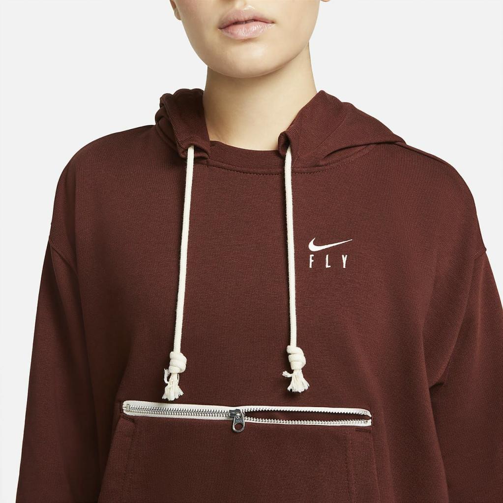 Føl dig frisk både på og uden for banen i Nike Dri-FIT Swoosh Fly Standard Issue-pullover-hættetrøjen. Den er inspireret af de professionelle kvinders opvarmningstøj og kombinerer en komfortabel og struktureret fornemmelse med teknologi, der er designet til at hjælpe med at transportere sved væk. Den er løs og rummelig i kroppen og er dekoreret med et Swoosh Fly-logo – symbolet på Nikes kvindebasketball.