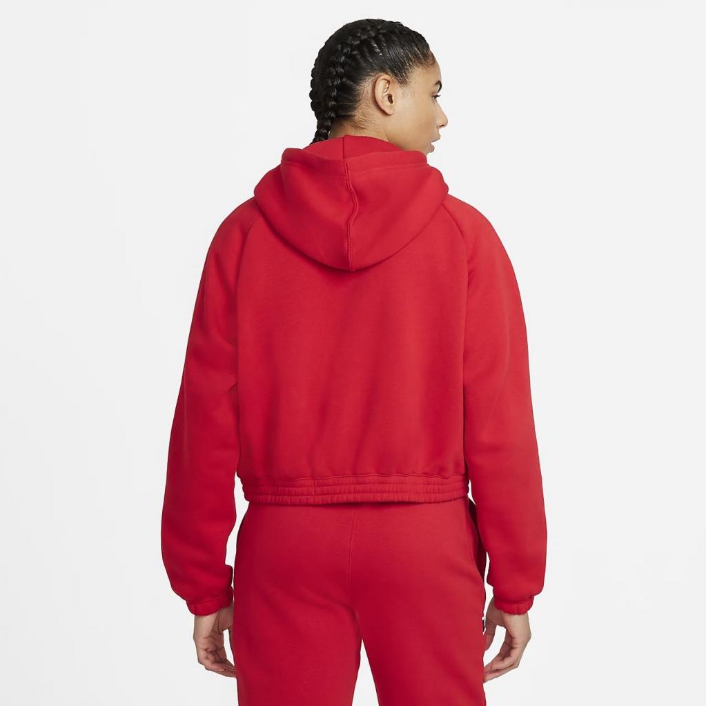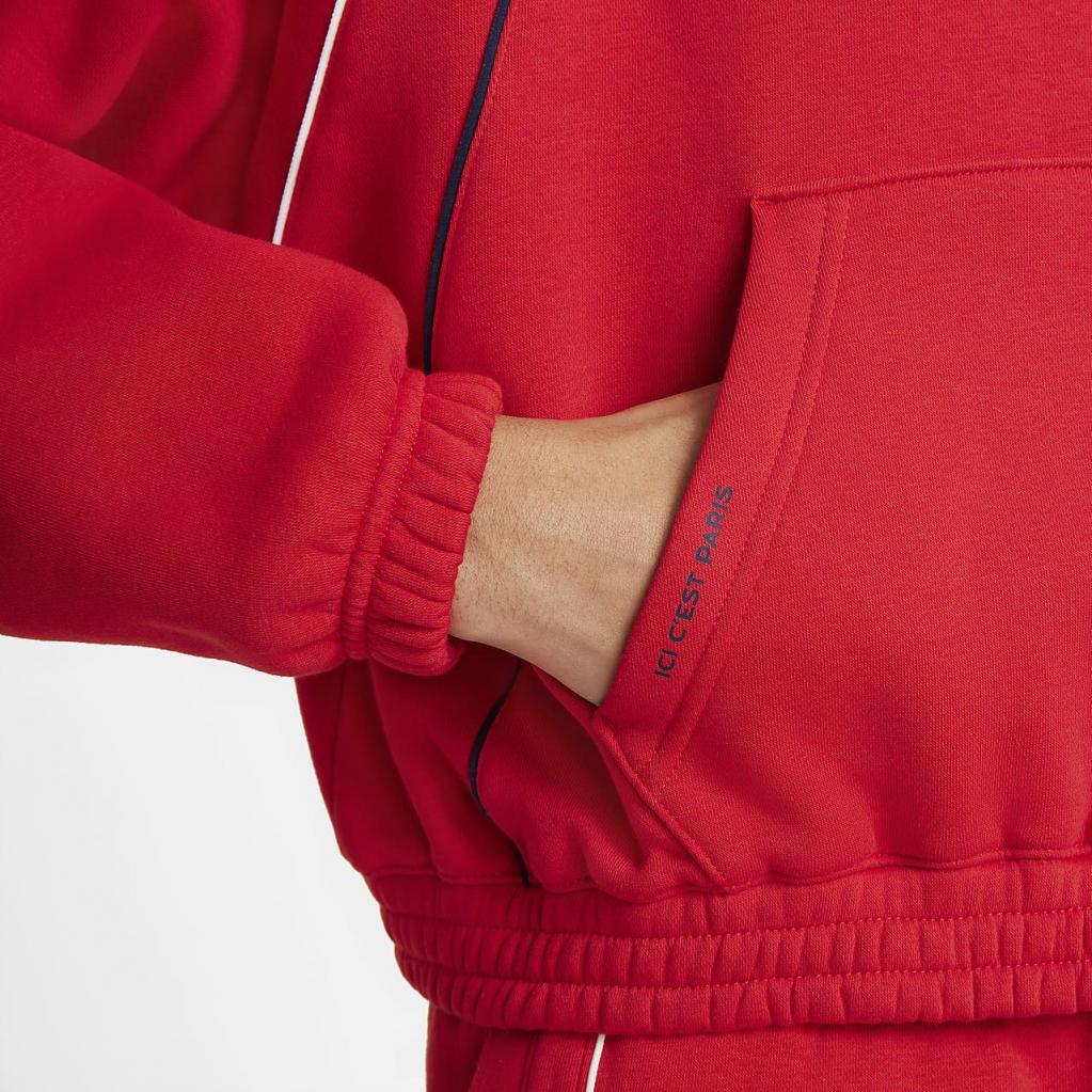 Paris Saint-Germain fleece-hættetrøjen kombinerer klassiske Jordan-snitlinjer med farverne fra Paris’ Home-sæt. Den er fremstillet i blødt, børstet fleece med en dejlig foret hætte og kontrastbånd, der er sat ind langs sømmene. Grafik på brystet spiller på klubbens ikoniske stribe-design.