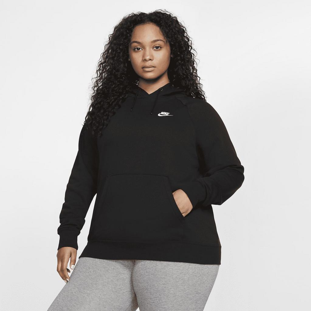 Slap af i Nike Sportswear Essential-hættetrøjen (Plus Size), der vil blive din yndlingssweatshirt for komfort hele dagen. Den er fremstillet i blødt, semi-børstet fleece med en justerbar hætte og en kængurulomme.