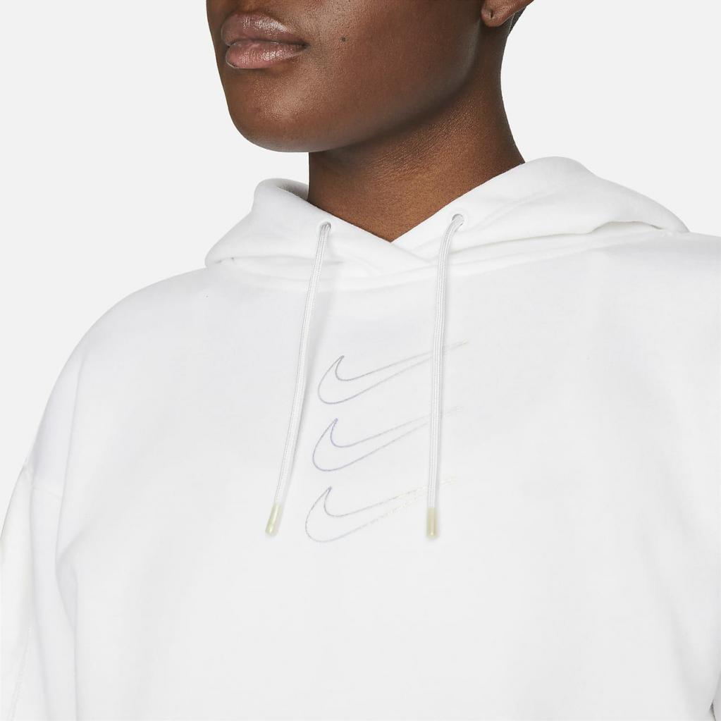 Det tredobbelte Swoosh-logo og de kurvede paneler på ærmerne er fremstillet i en farvestrålende film, der tilføjer præcis den rette mængde glans til dette behagelige fleecelag.