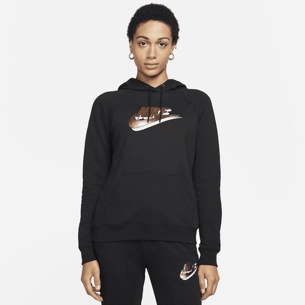 Denne hættetrøje med en afslappet pasform er fremstillet i fleece med børstet bagside, der giver en ultrablødt fornemmelse.Swoosh-logoer i lag af guld og Metallic Silver giver glans til dit look.