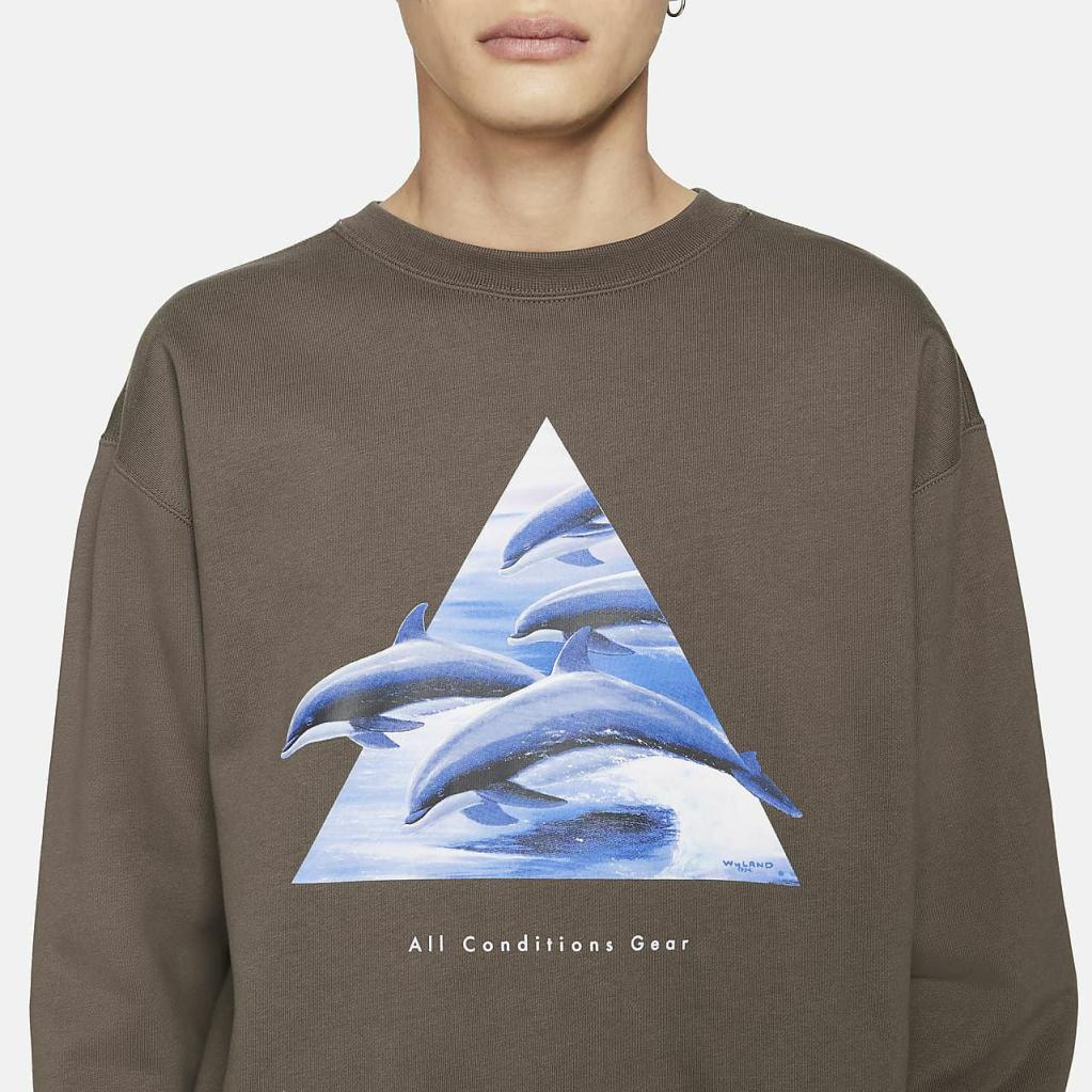 Varm, rummelig og klar til dine hårdeste eventyr.Nike ACG "Wyland"-sweatshirten har en kraftig, afslappet fornemmelse med grafik, der fremviser nogle af Hawaiis yndlings-havdyr.