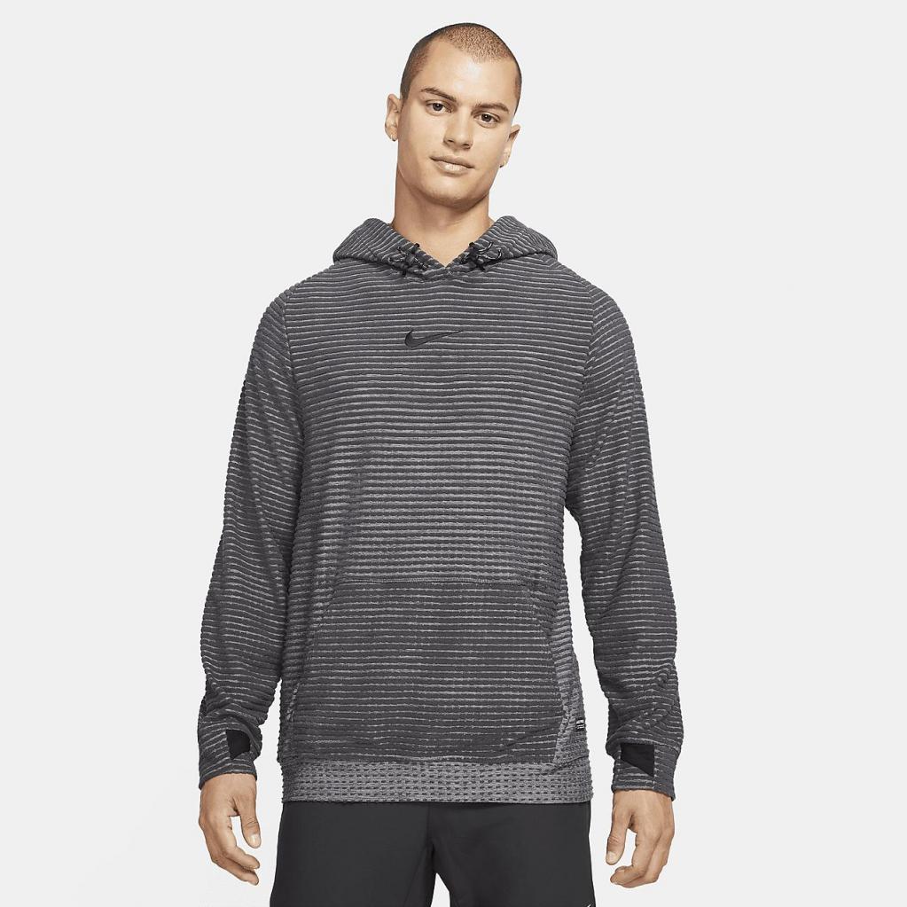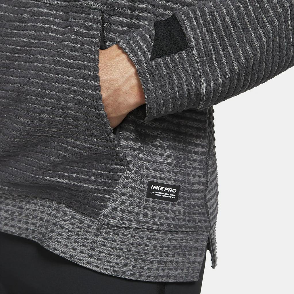 Nike Pro Therma-FIT ADV-hættetrøjen afbalancerer varme med åndbarhed, så du kan holde en behagelig temperatur, mens du træner eller konkurrerer under kølige forhold.Et innovativt lommedesign giver sikker opbevaring til dine ting, selv under intense aktiviteter.