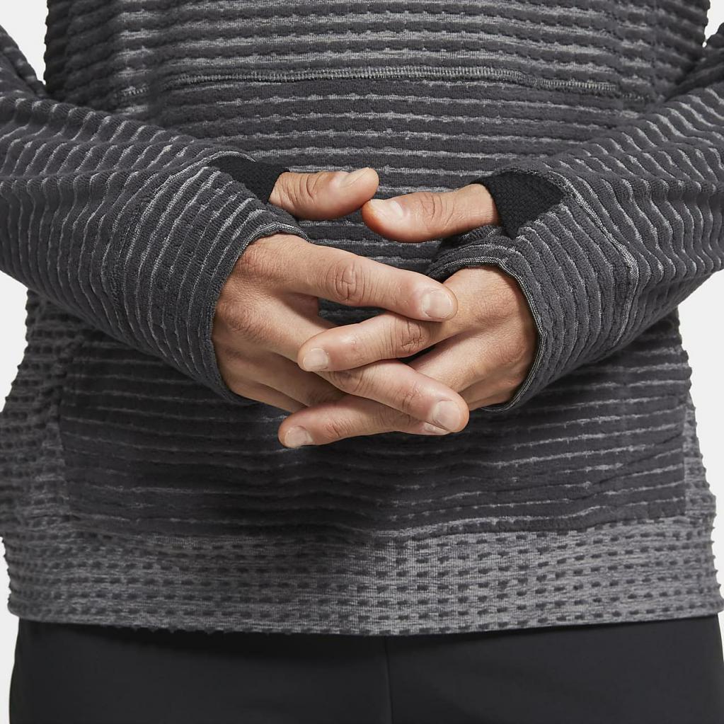 Nike Therma-FIT-teknologi hjælper dig med at holde på kroppens naturlige varme, så du kan have det lunt og godt under kolde vejrforhold.Til denne hættetrøje har Nike udviklet det maskinstrikkede design med vekslende rækker af superblødt, tykt french terry og et tyndere materiale med åndbarhed.Det skruer op for varmen, mens det frigør overskydende varme, så du kan holde dig på beatet.