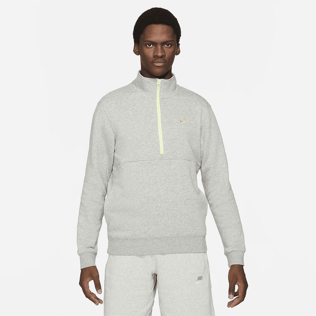 Nike Sportswear-pulloveren med halv lynlås har friske detaljer på en lag-på-lag-klassiker. Den bløde fleece konstruktion er børstet for ekstra komfort og har forlommer til dine kolde hænder. En broderet Futura-grafik tilføjer tekstur og en klassisk Nike-fornemmelse.