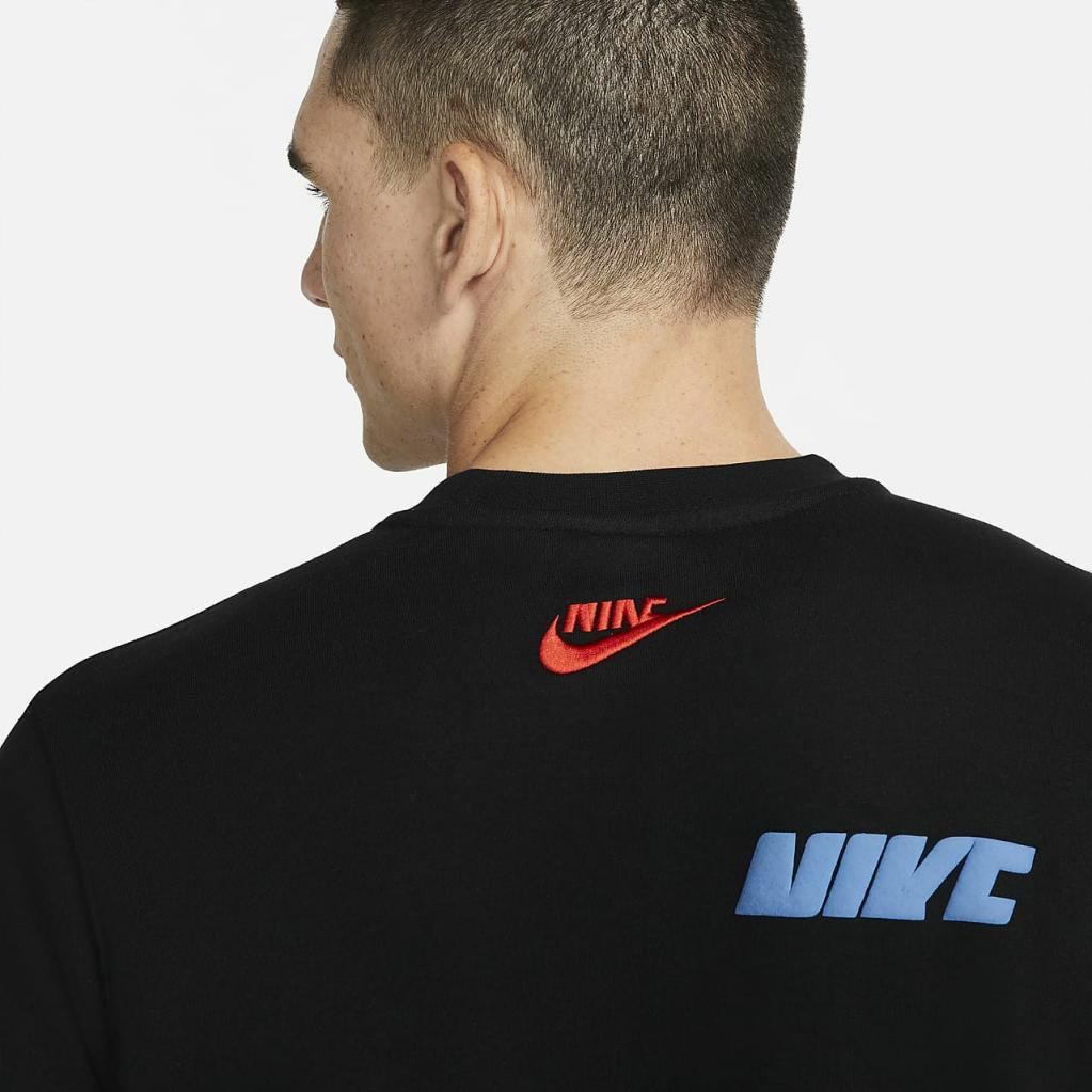 En spredt placering af glitchede Nike-logoer er printet med glat og plysset blæk.