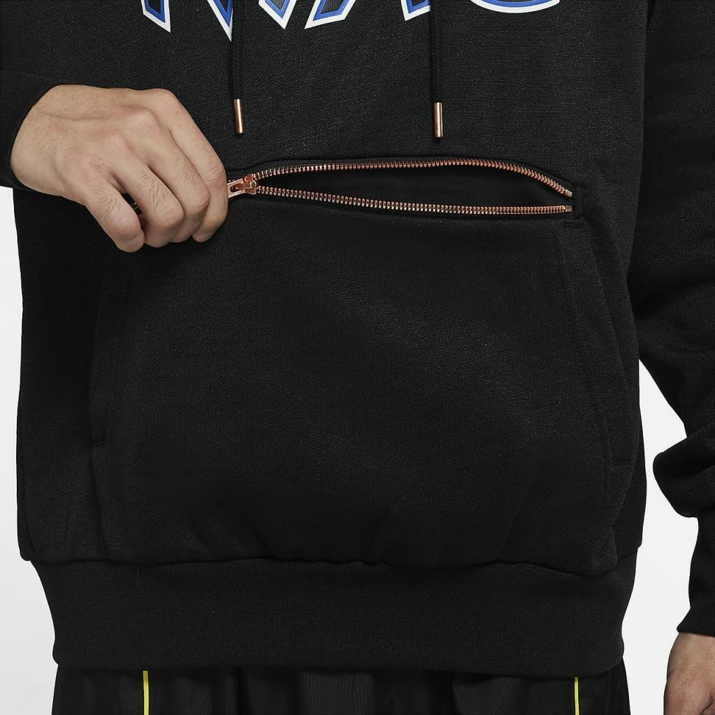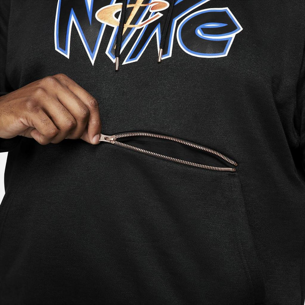 Nike Standard Issue premium-basketballhættetrøjen henter designdetaljer fra farverne og grafikken fra Penny Hardaways pro-spillertrøje fra 90’erne. Den er fremstillet i kraftigt french terry med elastiske paneler og en lomme med lynlås.