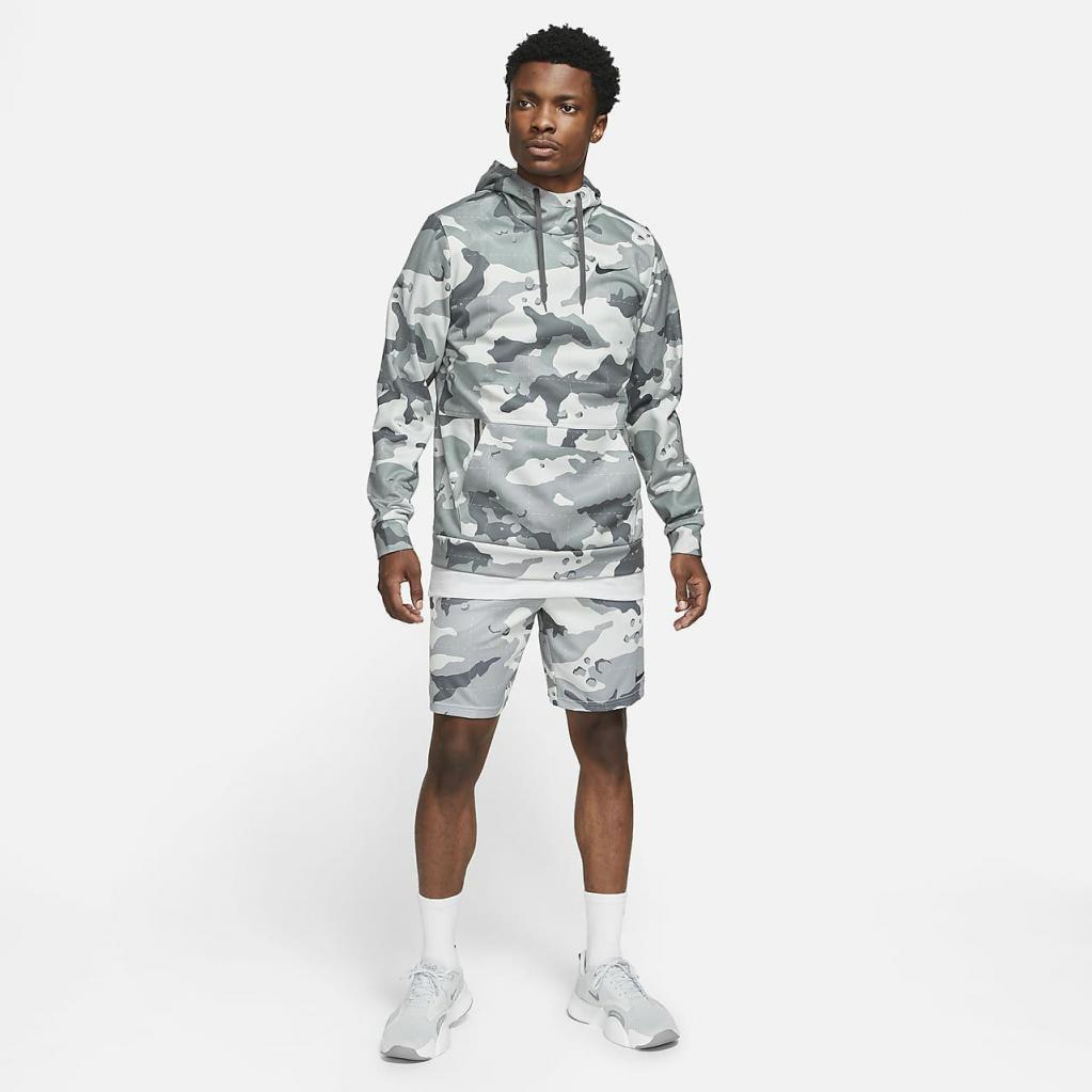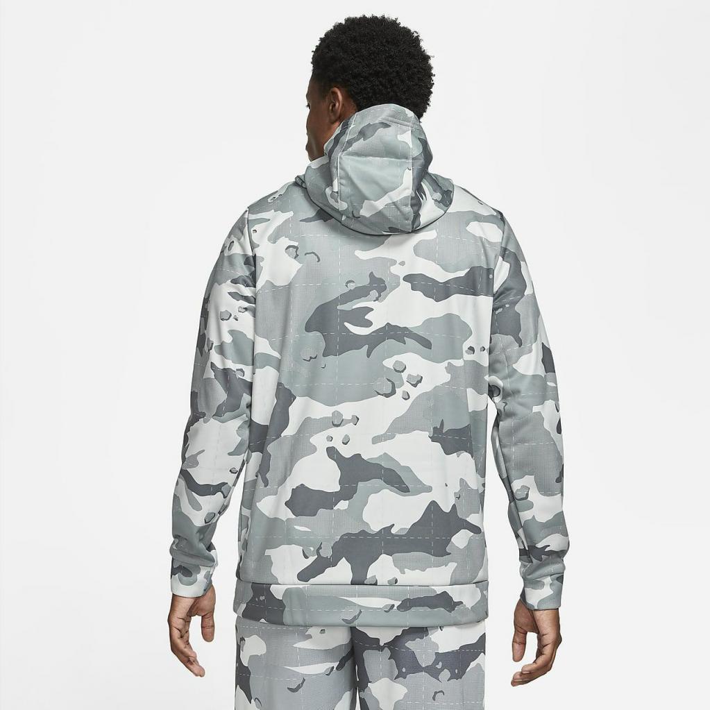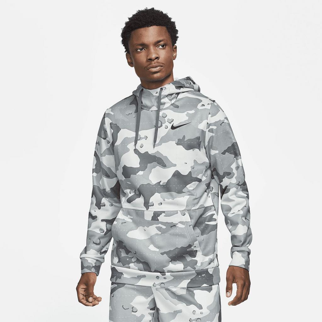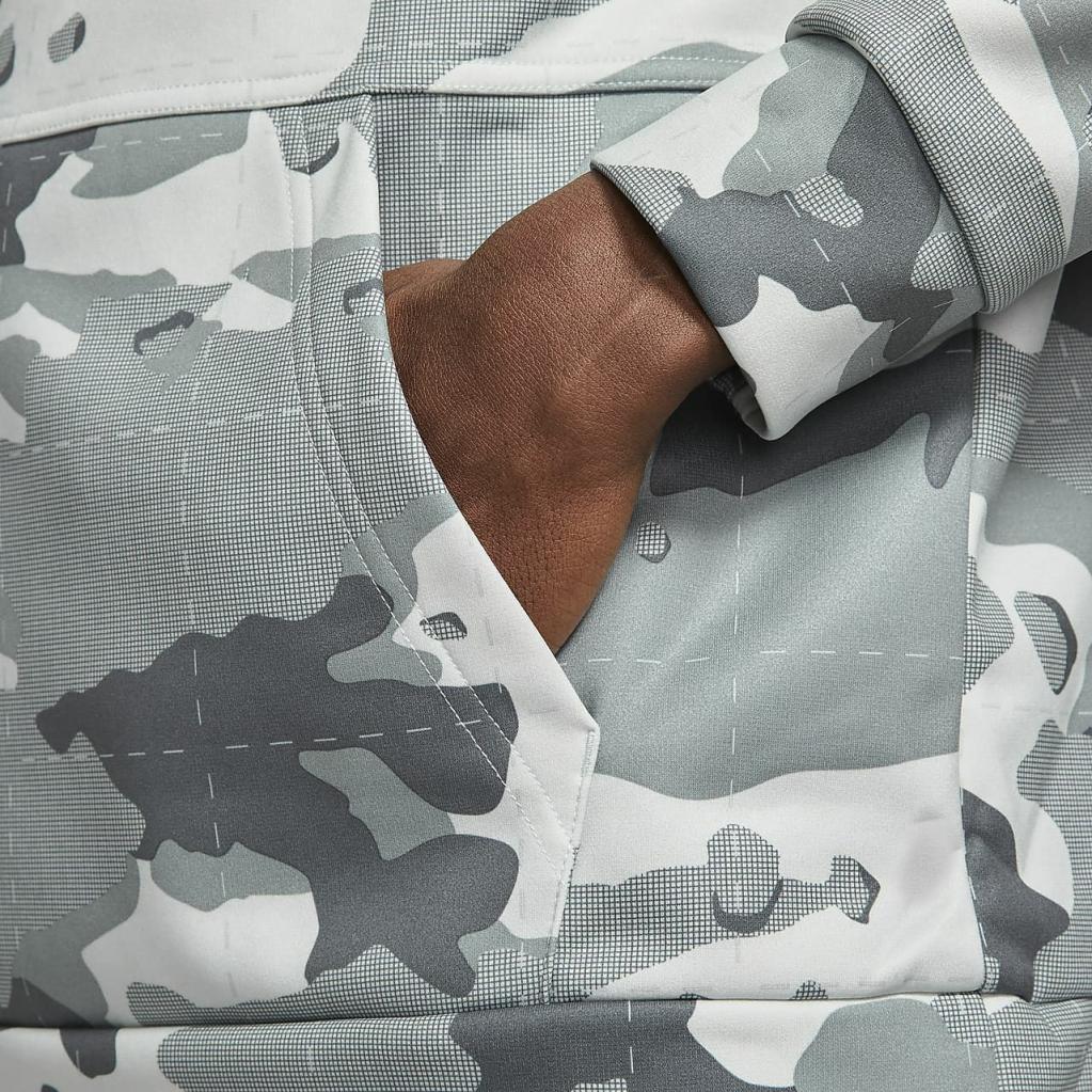Nike Therma-FIT-hættetrøjen hjælper med at holde dig varm og tør før, under og efter din træning med blød fleece, der transporterer sveden væk. Den er fremstillet med mindst 50 % genanvendte polyesterfibre og camouflage-print og giver et bydende look.