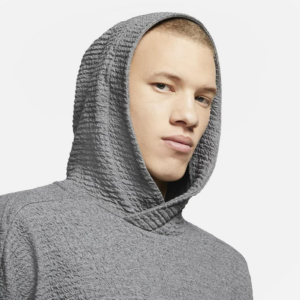 Sæt gang i dit workoutflow med Nike Yoga Nomad-hættetrøjen. Blødt, elastisk materiale er fremstillet i en blanding af mindst 75% genbrugte og økologiske fibre, der holder dig tildæ…