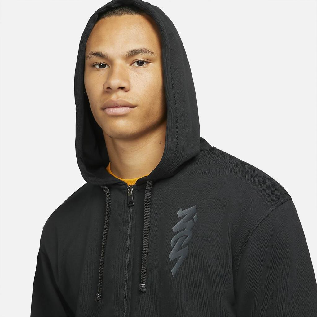 Zion-hættetrøjen afspejler, hvilken slags tøj Zion elsker at have på, når han ikke er på banen og i stedet hænger ud med familie og venner. Den er lavet af behageligt french terry med rå sømme og svedtransporterende teknologi. Den er trimmet med hans logo og en rå grafik på ryggen, der har et enormt "ZW"-print.