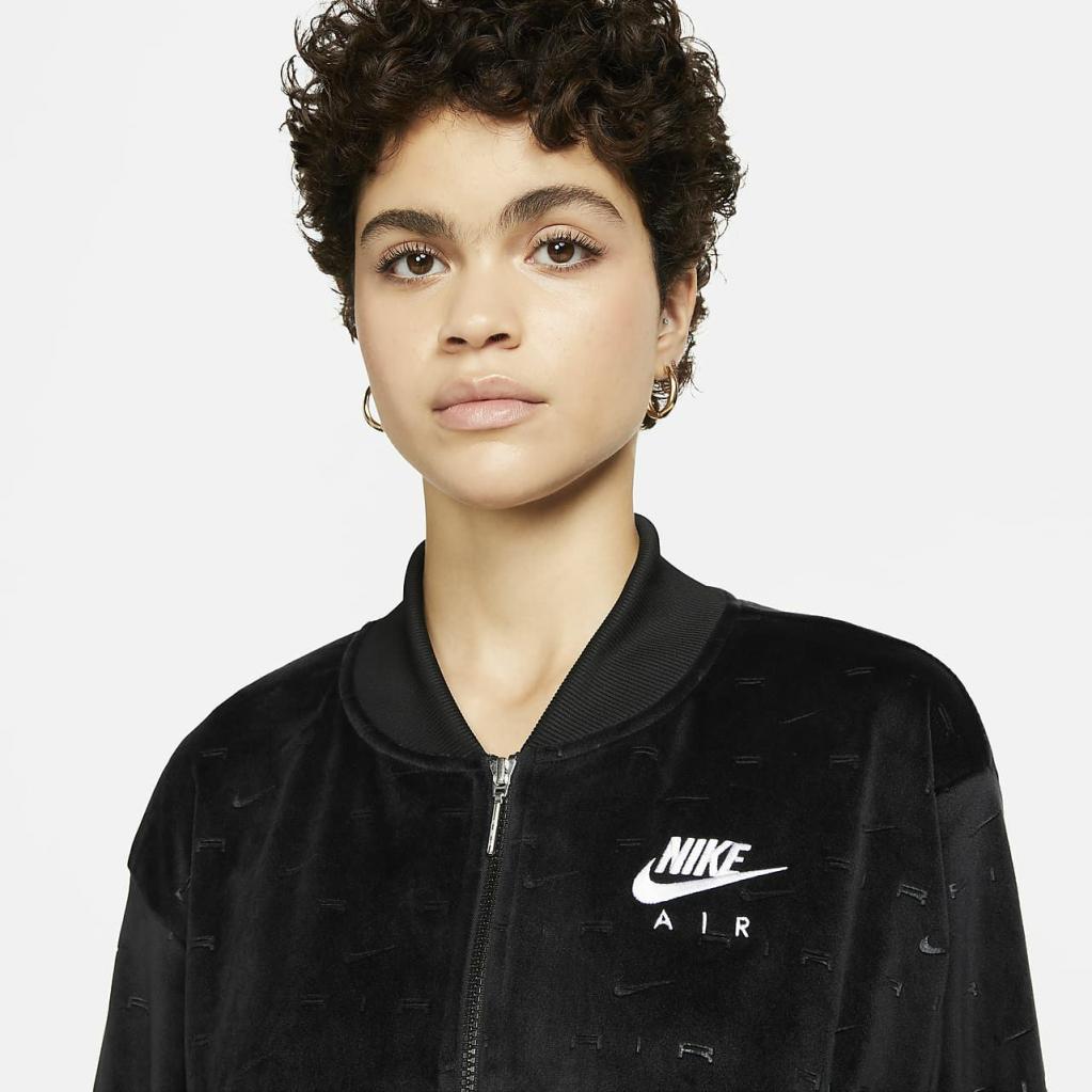 Nyd hvert sekund af feriesæsonen i Nike Air-velourjakken.Denne friske version af den klassiske bomber er fremstillet i blød velour og er præget over det hele af heldækkende Nike Air-design og en afkortet læn…