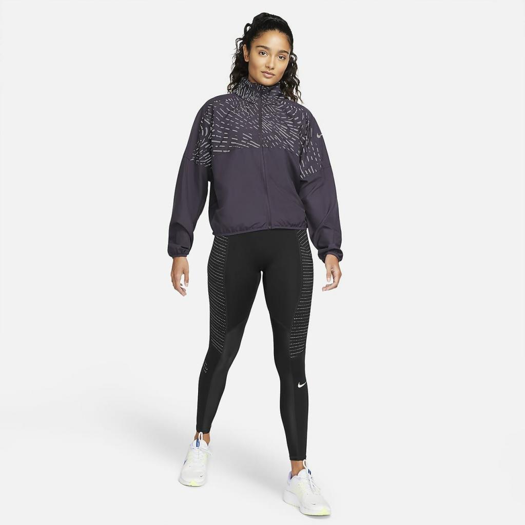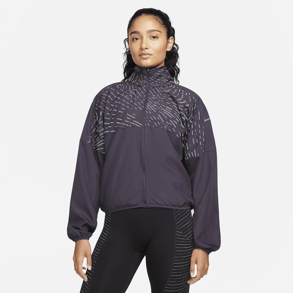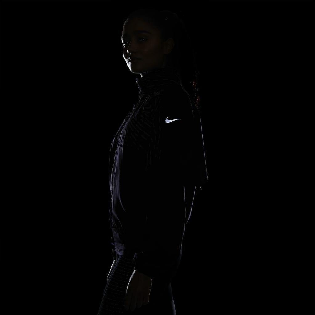 Lad ikke det kolde vejr stoppe din løberutine.Lyn Nike Dri-FIT Run Division-jakken op, og nyd svedtransporterende materiale med et reflekterende print, der lyser op på løbeturen.En hætte giver ekstra dækning, og den kan også pakkes ind bag på kraven.Dette produkt er fremstillet med mindst 75% genanvendte polyesterfibre.