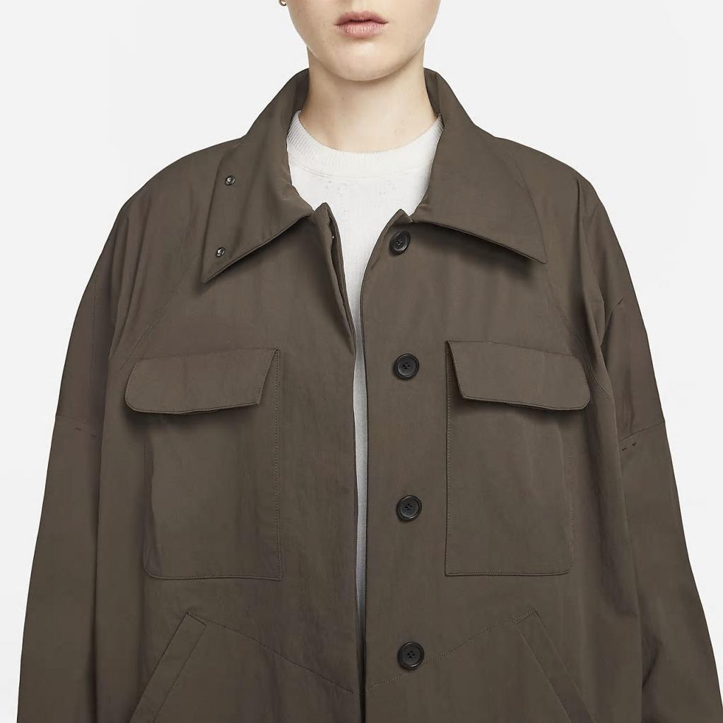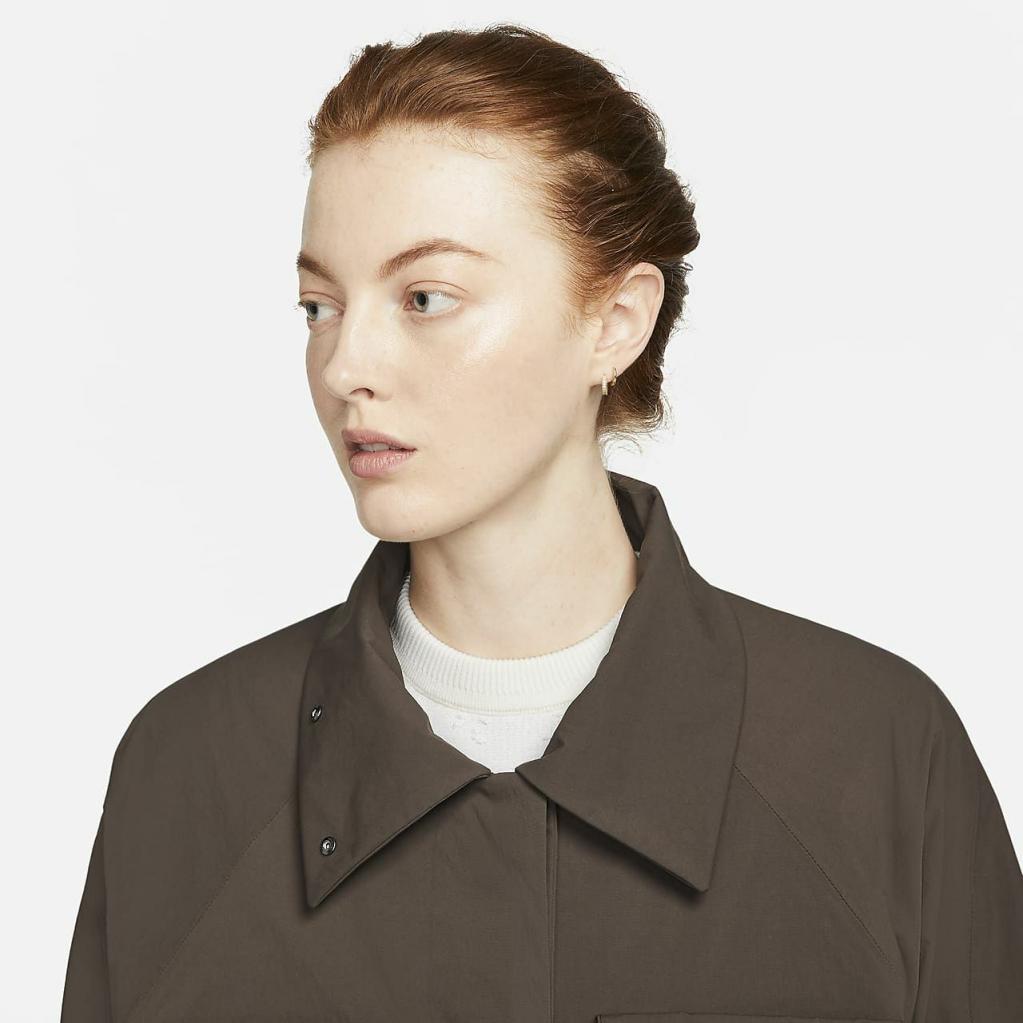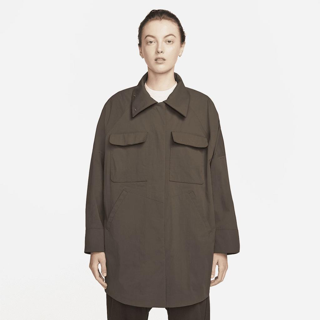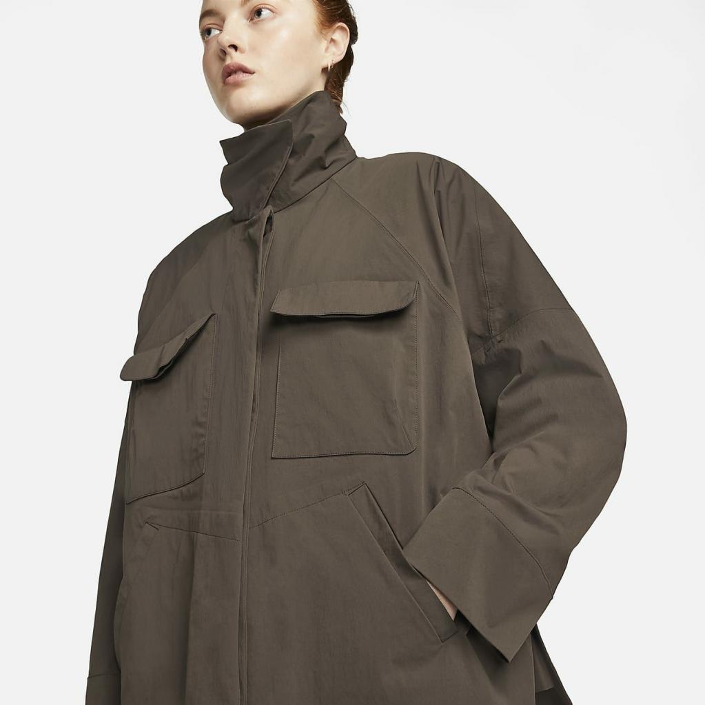 Det slidstærke, vævede materiale er vandafvisende, mens forseglede sømme og en vandtæt lynlås foran hjælper med at holde dig tør, hvis du nogensinde bliver fanget i en storm. Dens længere snit holder dig mere tildækket og dit outfit tørt.