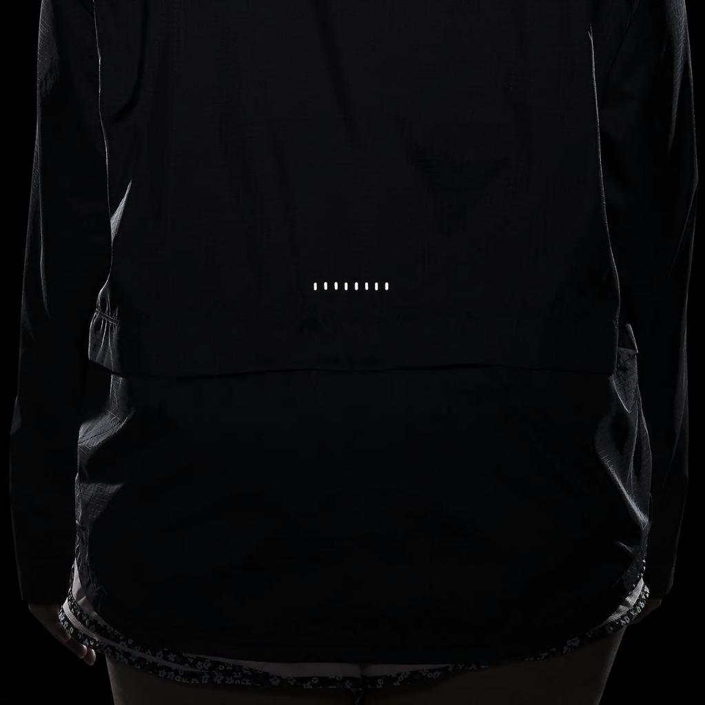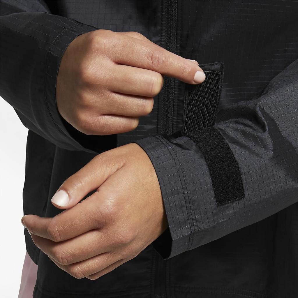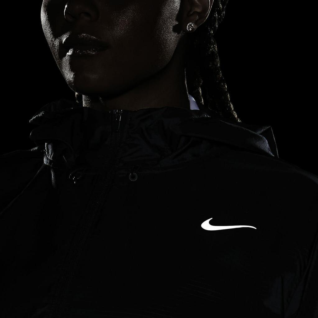 Nike Essential-jakken hjælper videre, når vejret bliver vådt. Vandafvisende materiale kombineres med hættedækning for at holde dig tør på løbeturen.