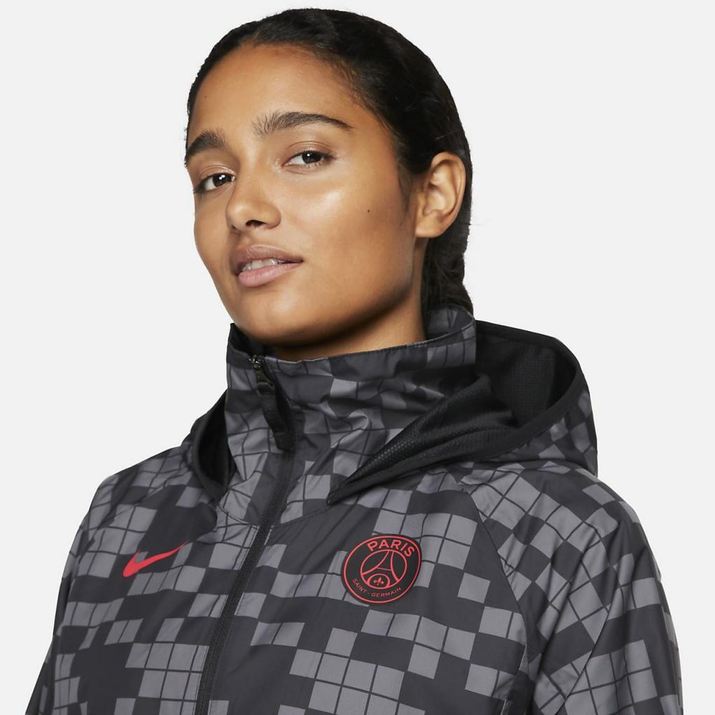 Paris Saint-Germain AWF-jakken opdaterer en fodboldklassiker med kampklare detaljer, såsom et kort design, der går til hoften.Det svedtransporterende og vandafvisende materiale hjælper med at holde dig tør og veltilpas fra banen til fortovet.
