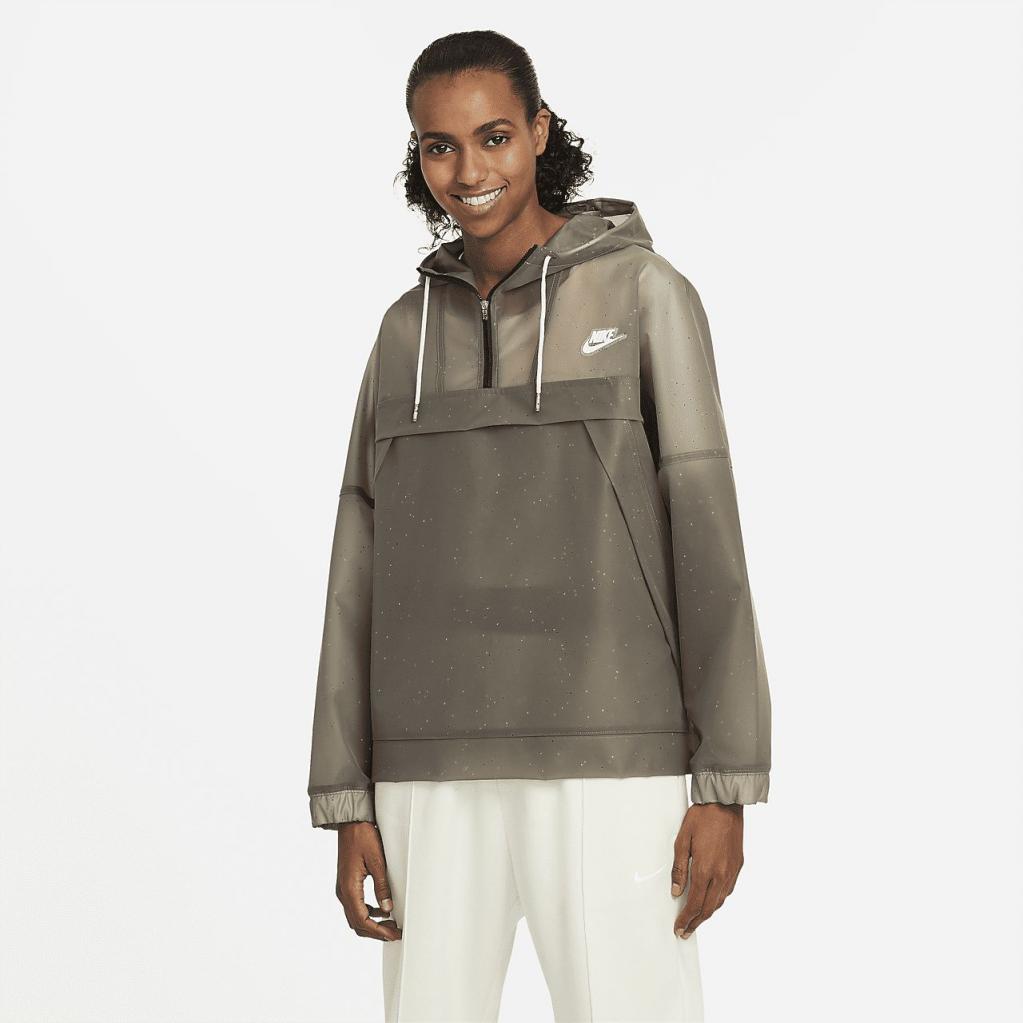 Nike Sportswear-jakken opdaterer en pullover-favorit med Nike-signaturdetaljer og et halvgennemsigtigt TPU-materiale fremstillet i nogle genanvendte materialer. Vindflaplommer med lynslås giver sikker opbevaring af dine hverdags-musthaves. Dette produkt er fremstillet med mindst 75% bæredygtige materialer.