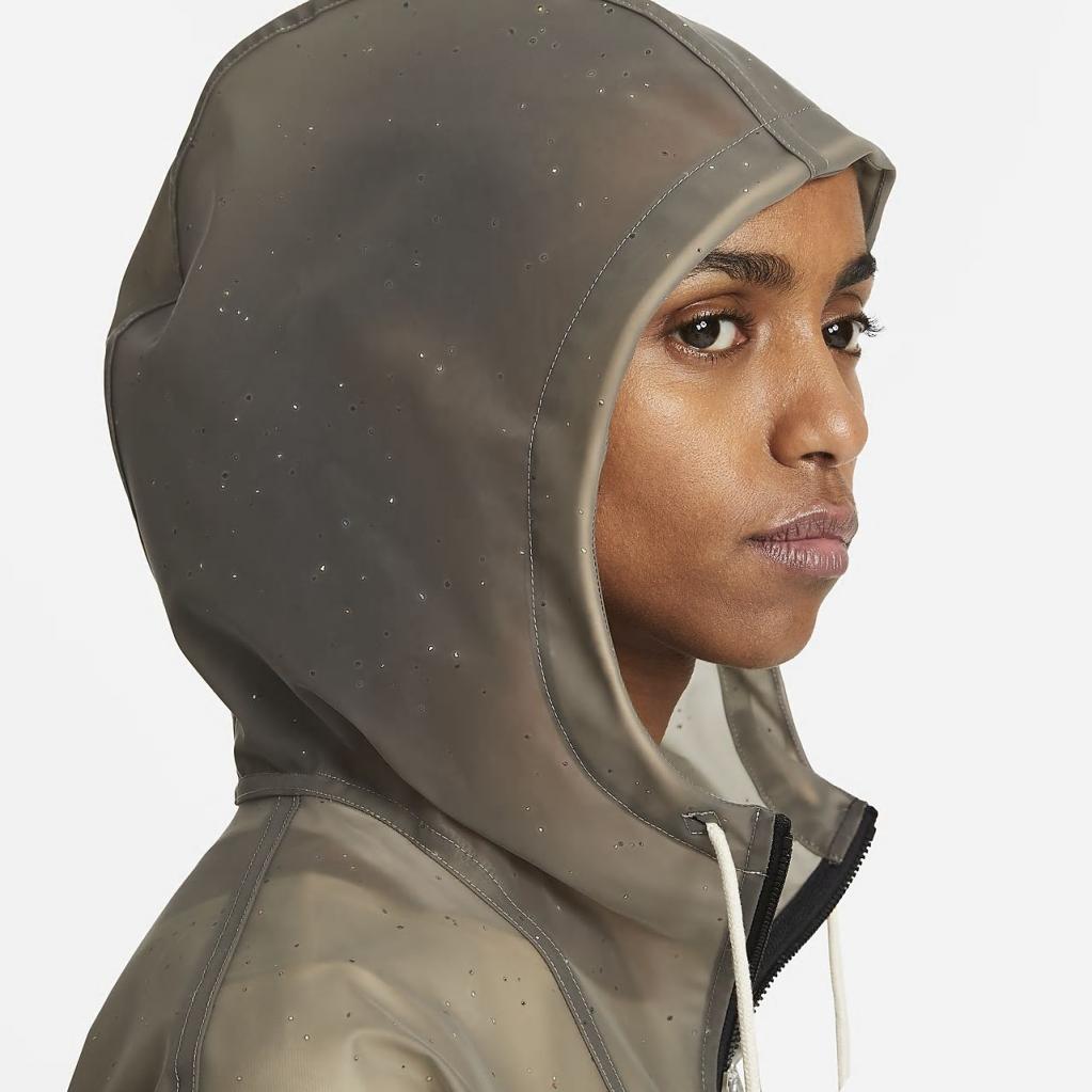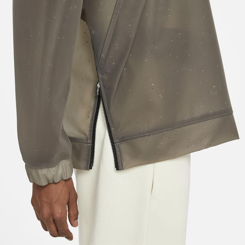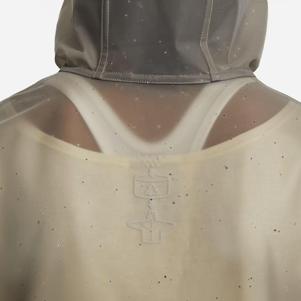Jakkens plettede udseende skyldes Nike Grind i sin komposition, der er et genanvendt produkt fremstillet med materialespild fra skoens fremstillingsproces. Logoet, lynlåse og forseglede sømme har også dette materiale.