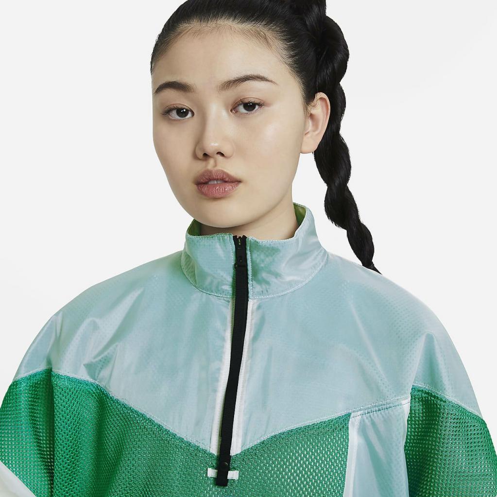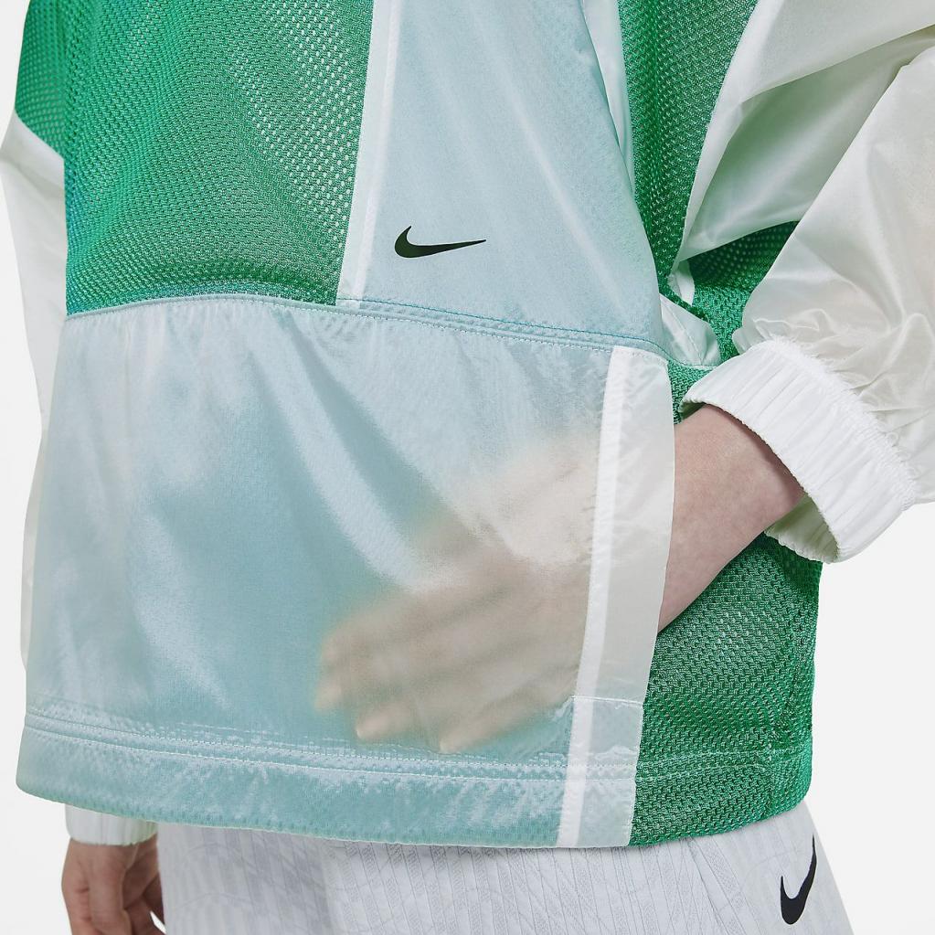 Nike Sportswear Tech Pack-jakken kombinerer mesh og et gennemsigtigt, vævet materiale, der tilføjer diskrete variationer af farve og tekstur til denne energiske letvægts-pullover.
