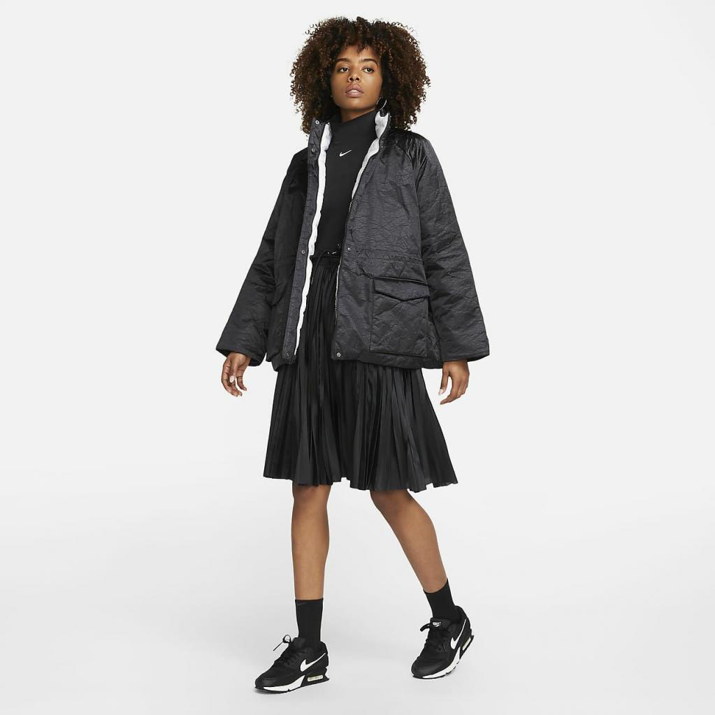Gør din vintergarderobe klar med den vidunderligt varme Nike Sportswear-jakke. Dens metalliske stof er klar på at hjælpe dig med at skinne. Thermore™ EcoDown-isolering og en semi-gennemsigtig ripstopforing giver et stilfuldt look og ekstra varme til at holde dig lun i koldere temperaturer. En overdimensioneret pasform giver nem lag-på-lag-komfort og ekstra dækning i koldt, vådt vejr.