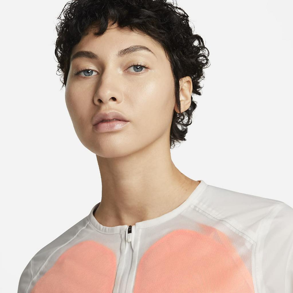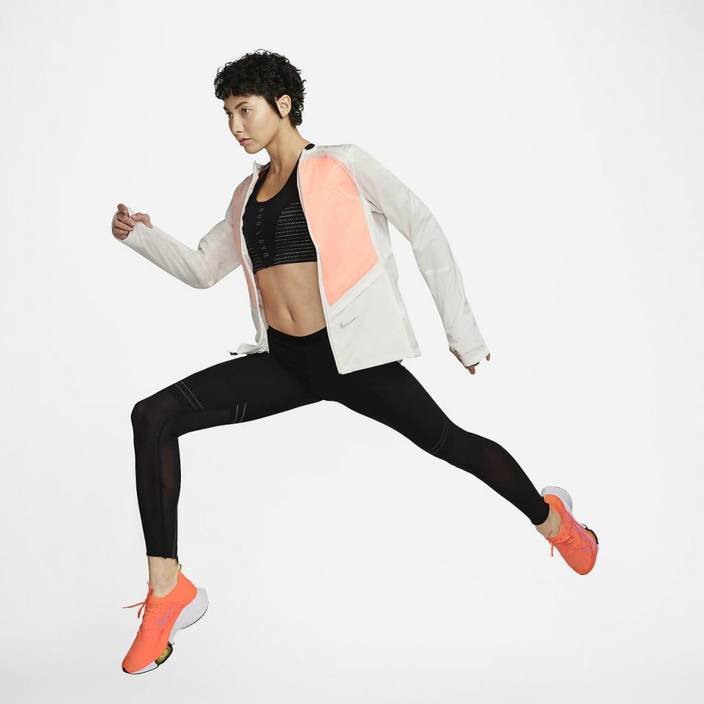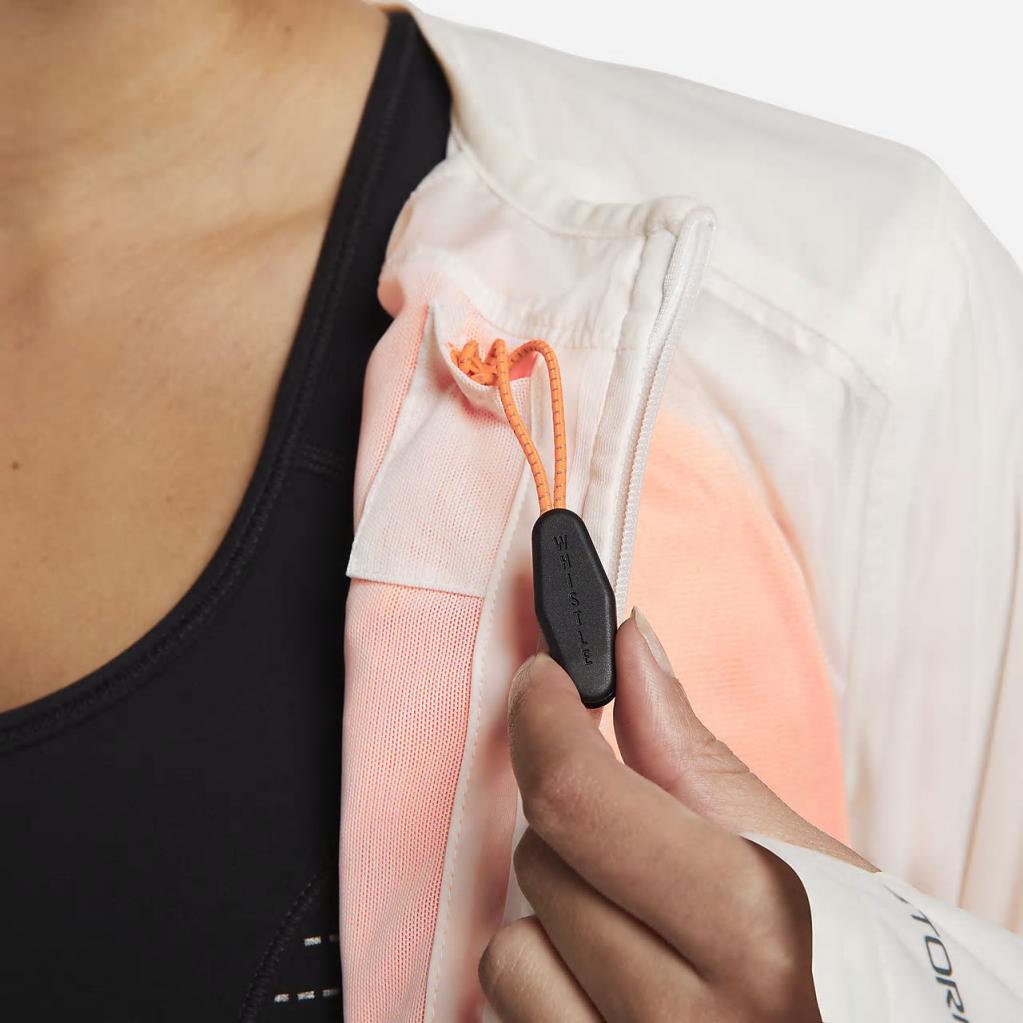 Jakken har Windrunner-inspirerede designlinjer, der fungerer som lommer. Brug dem til at opbevare en nøgle eller et kort. Når du ikke har den på, kan jakken pakkes ned i venstre lommen, så den er nem at bære.