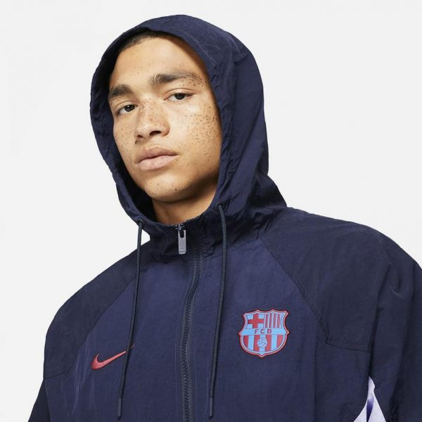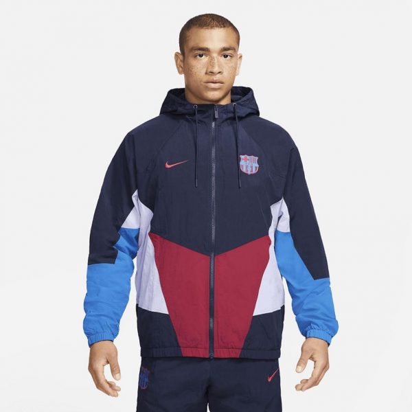 FC Barcelona Windrunner-jakken kombinerer holdstolthed med Nikes legendariske 26-graders vinkeldesign, der har defineret Windrunner-stil i årtier.Letvægtsmateriale og en meshforing giver dig behagelig tildækning.