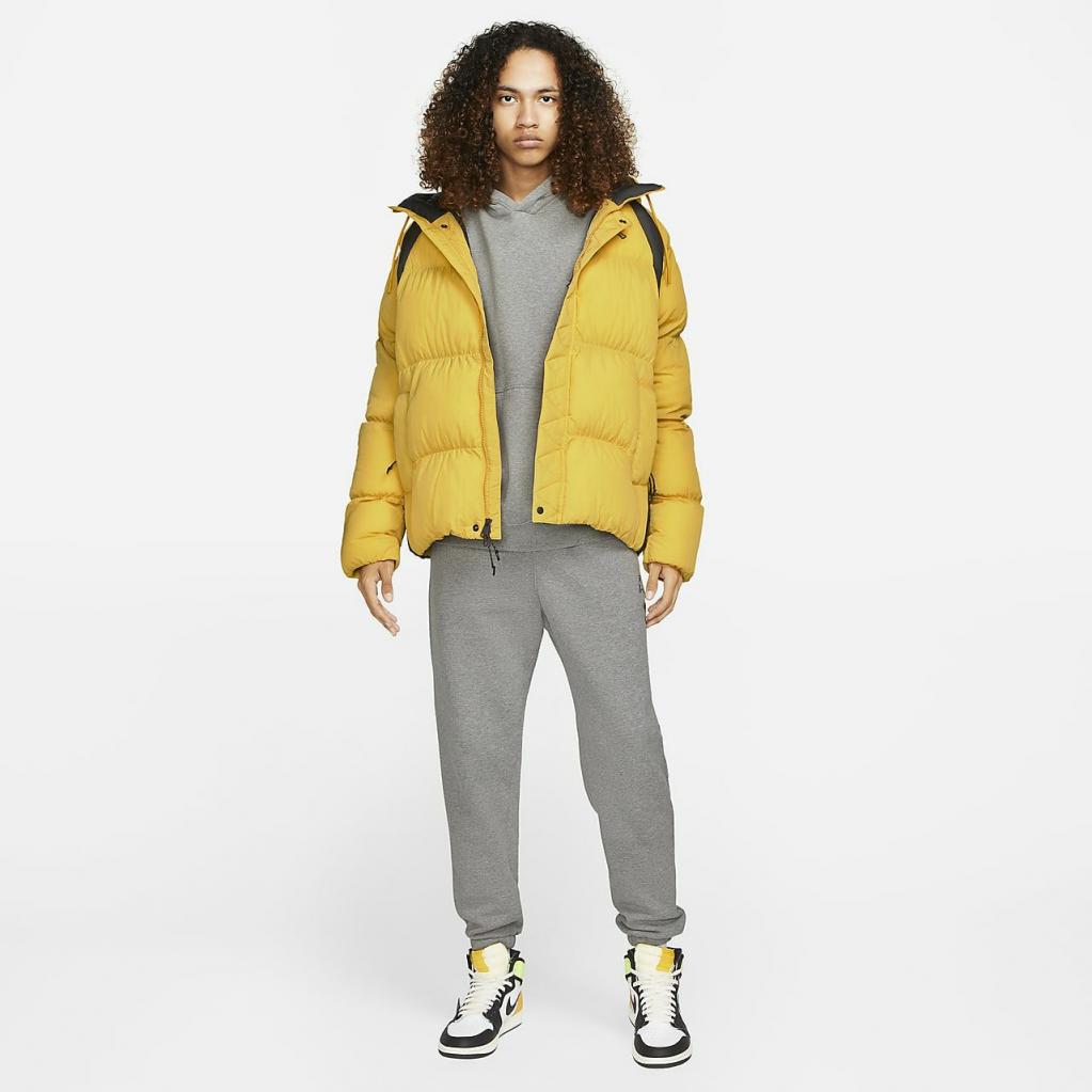 Du kan have flere lag på i kulden med Jordan Essentials-dynejakken. Yderlaget og foret er fremstillet i vævet, vandafvisende materiale, og hele jakken er isoleret med luftigt, syntetisk fyld. Indsatte paneler med farveblokke er inspireret af den ikoniske AJ1 Wings-jakke.