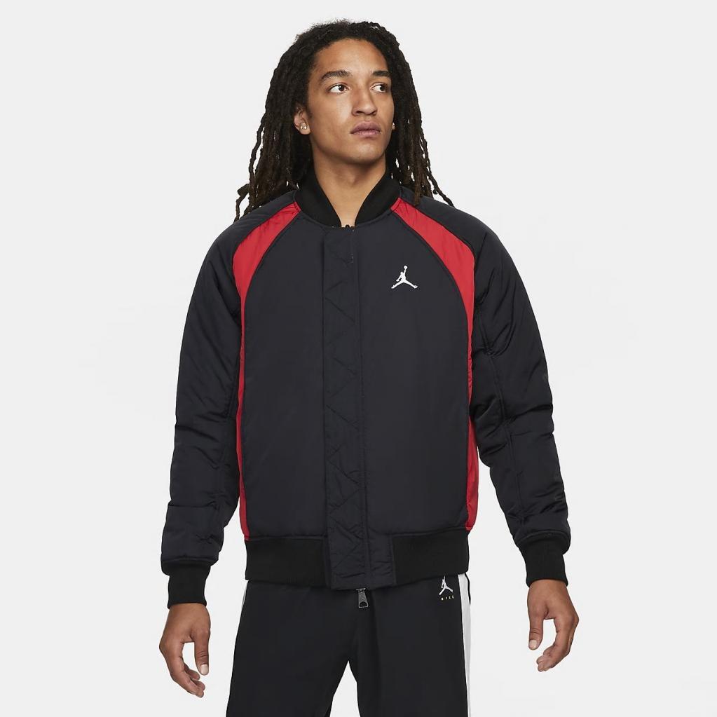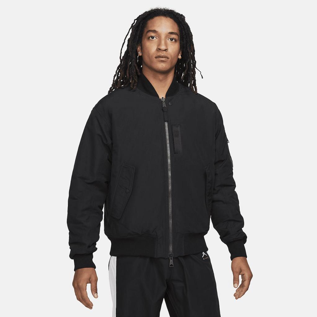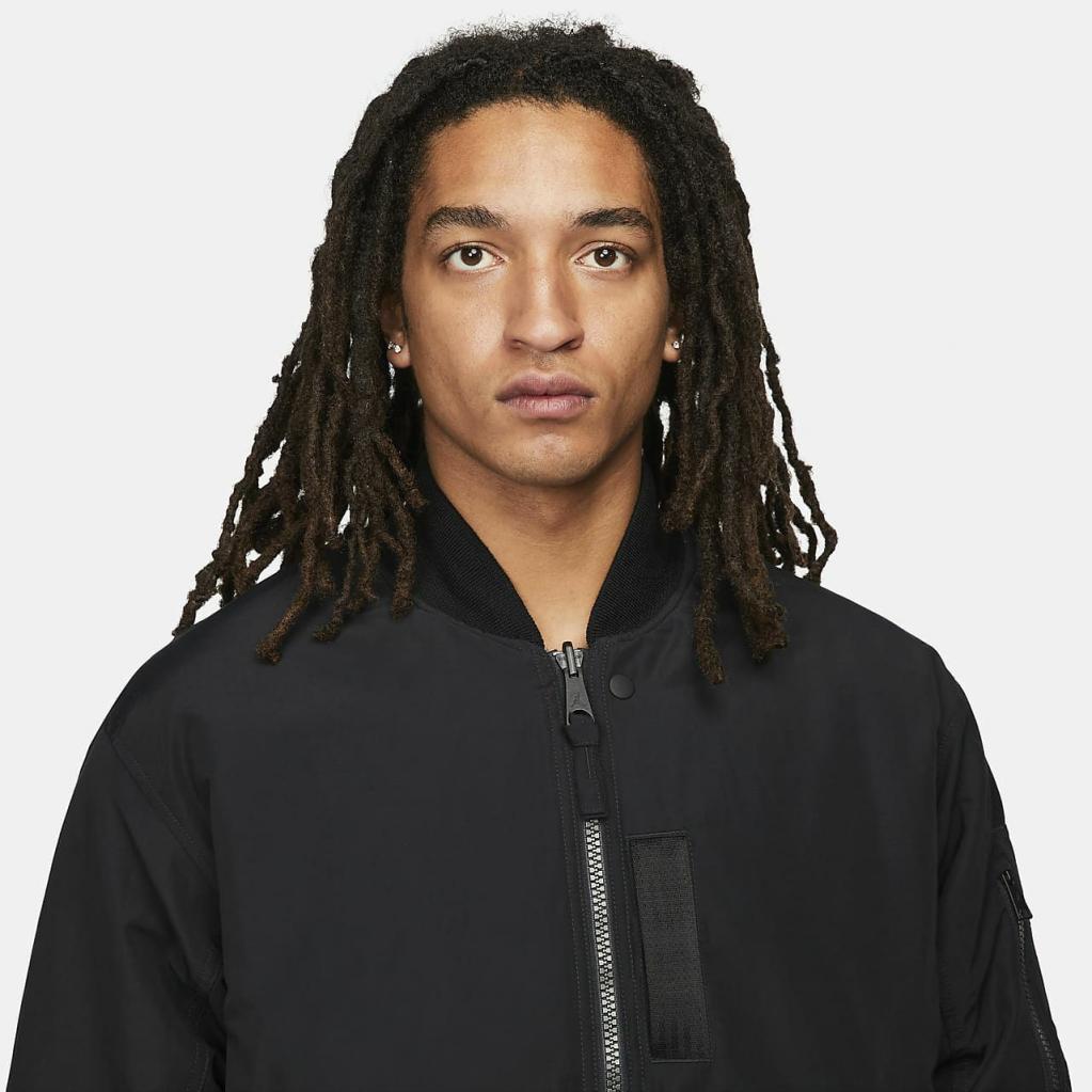 Du kan lagdele med stil denne vinter i Jordan Essentials Statement-MA-1 jakken. Denne klassiske bomber-stil, der er et af vores mest populære design, er vendbar og ensfarvet på den ene side og har farveblokke inspireret af AJ1 Wings-jakken på den anden side.