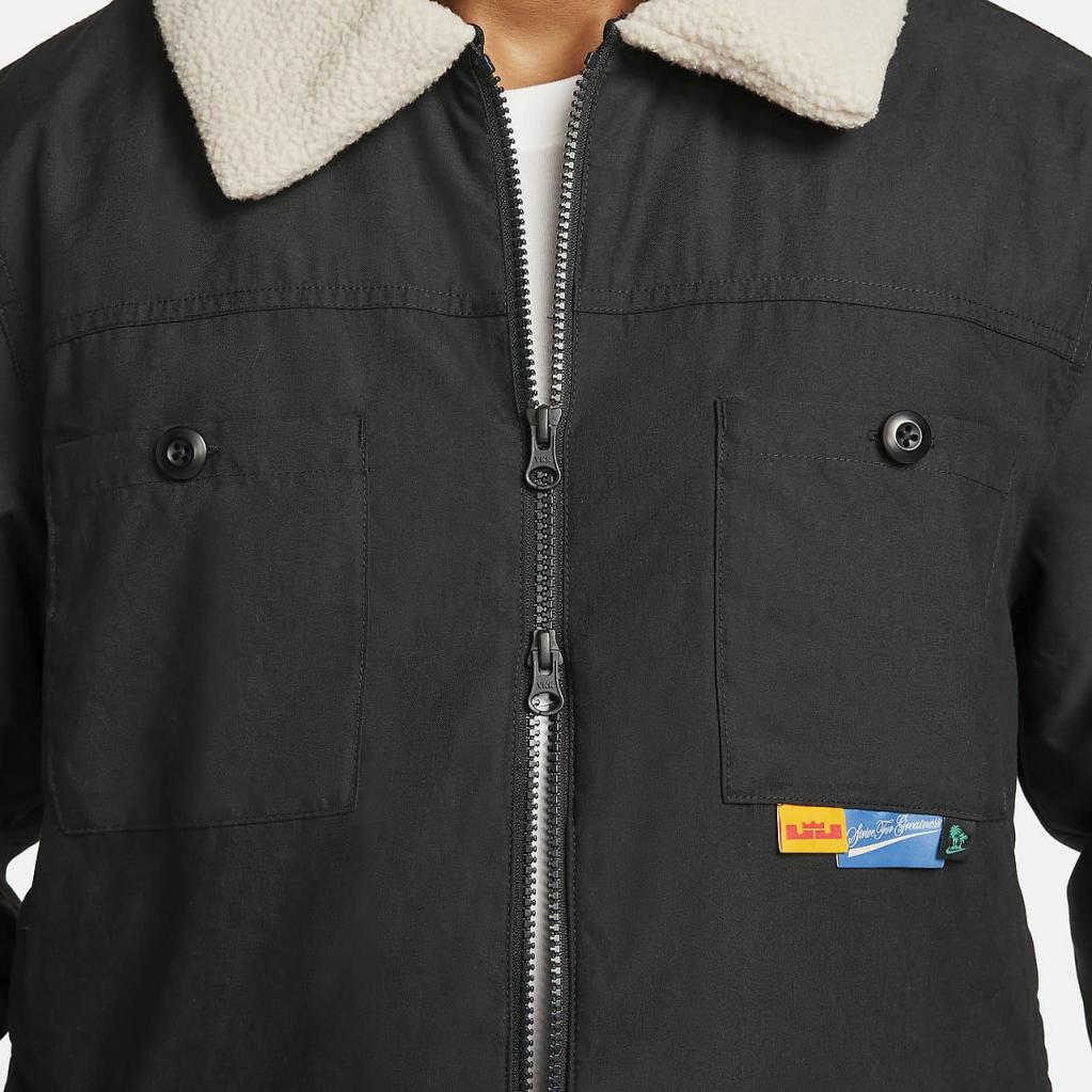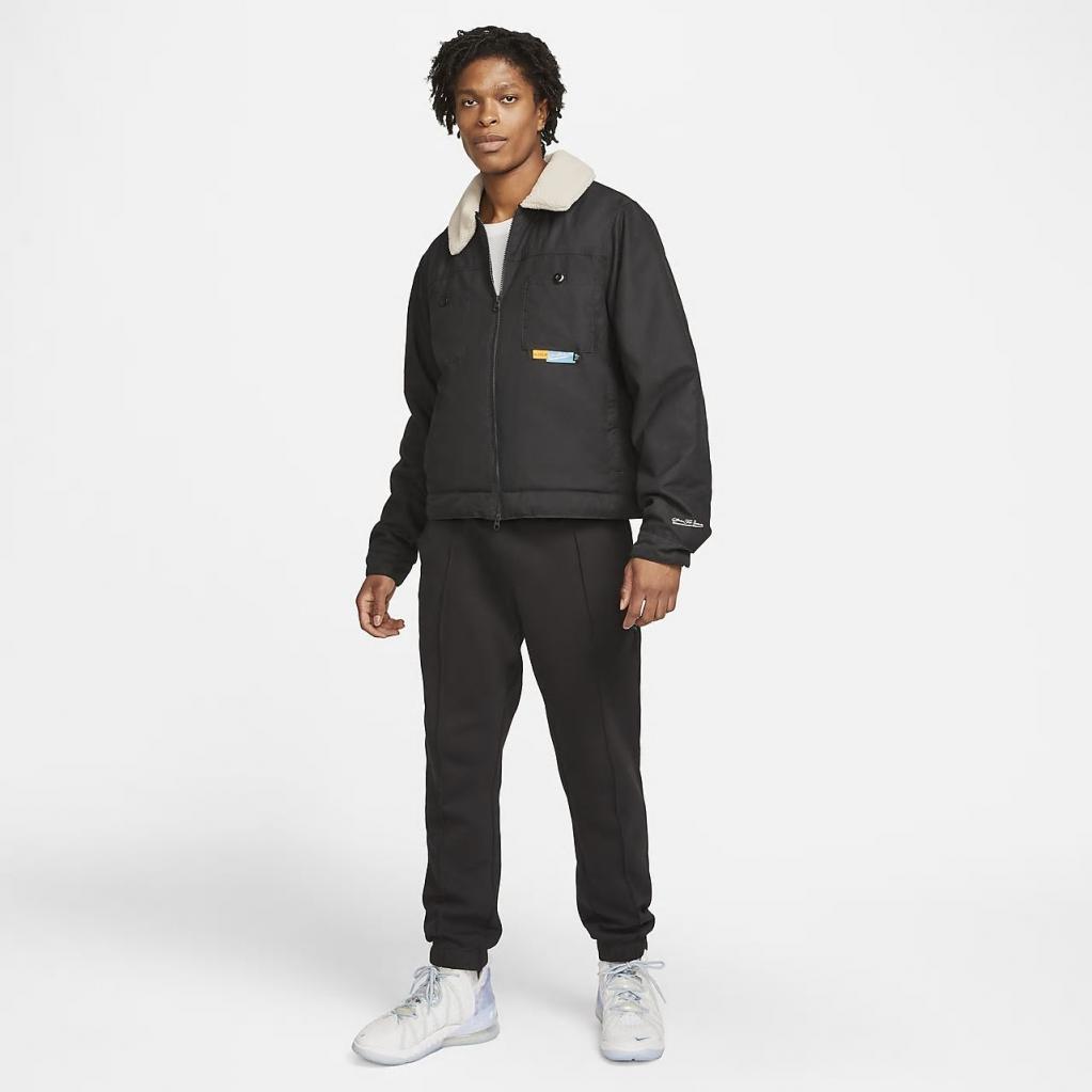 LeBron bruger flere forskellige jakker, afhængigt af vejret.Hans beskyttelsesjakke fra Nike Baskelball givet et LeBron-spin på en klassisk silhuet med lynlås i fuld længde.Den har en løs pasform og giver letvægtsisolering, der er behagelig at have på i flere lag.Den foldede fleecekrave og bryst lommerne giver den en klassisk arbejdstøjs-vibe.