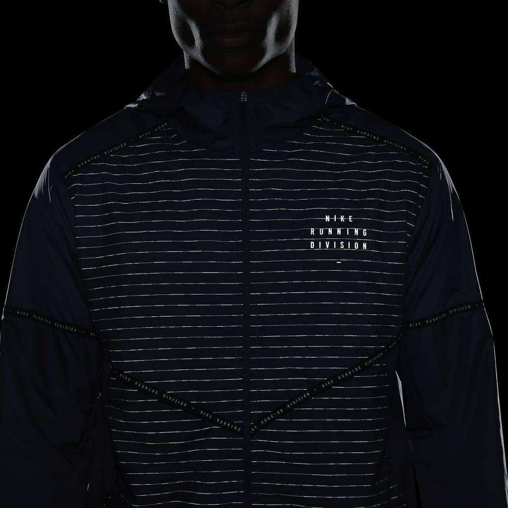 Nike Storm-FIT-teknologi modstår vind og vand, så du kan holde dig veltilpas under barske vejrforhold.Den kombineres med superlet vævet materiale med reflekterende tråd integreret på jakkens forside.