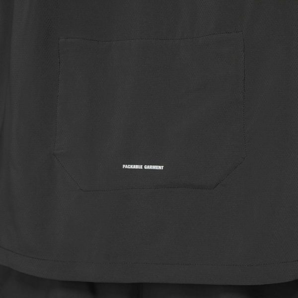 Jakken kan pakkes sammen i panellommen bagpå, når du har brug for at tage et lag af.Skulderstroppen gør det nemt at bære tøjet, når du er på farten.