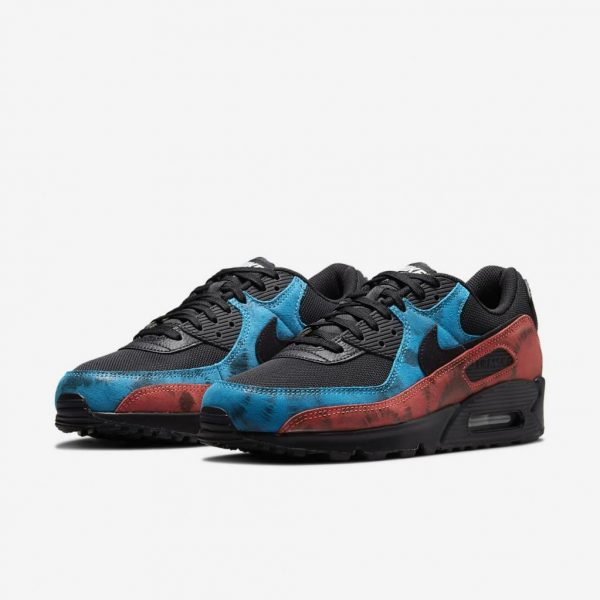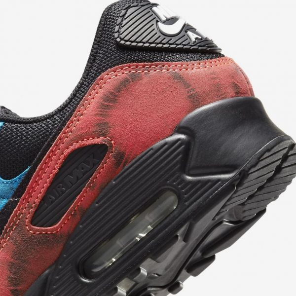Nike Air Max 90 giver den originale Waffle-ydersål et nyt twist med syede stafferinger og klassiske TPU-detaljer.Dette opdaterede design har en overdel i rødt og blåt batikfarvet ruskind og et klassisk Swoosh-logo i sort lærred, mens Max Air-enhed i hælen giver dig den bløde stødabsorbering, du elsker.
