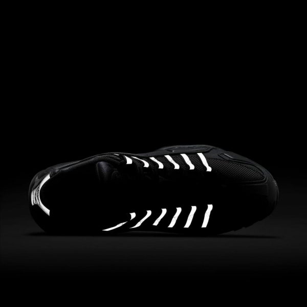 Nike Air Max 95 NDSTRKT, der henter inspiration fra den menneskelige krop og fra løbe dna, blander utrolig komfort med overraskende stil og tilføjer samtidig frisk, street-ready sejhed. De klassiske snørebånds-"ribs" er opdateret med slidstærkt net og reflekterende hits, mens en ny TPU-ramme er smedet omkring overdelen og blander slidstyrke med sports-action-stil. Synlig Air i hælen og forfoden bevarer 90’er-stilen og giver stødabsorbering ved hvert skridt, mens store utility-knopper tilføjer greb.