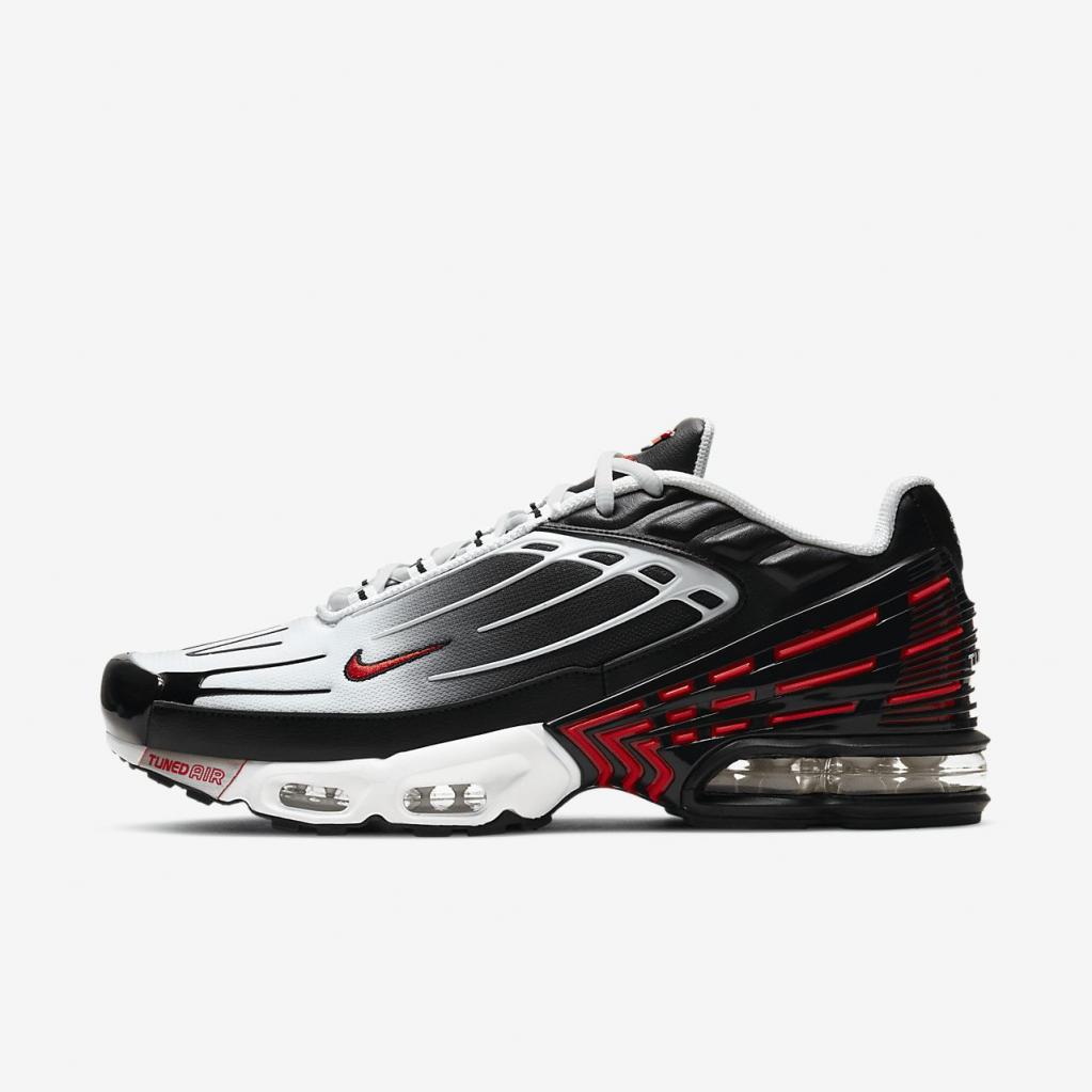 Vis din attitude i Nike Air Max Plus 3, som er en tunet Air-oplevelse, der opdaterer det klassiske design fra ’98 med futuristiske linjer og slidstærke materialer, så du er klar til byen. Disse sneaks har originalens klassiske plastikdetaljer og et gradueret look kombineret med synlig Air-stødabsorbering, så du kan gå komfortabelt rundt med et fremtidigt look.