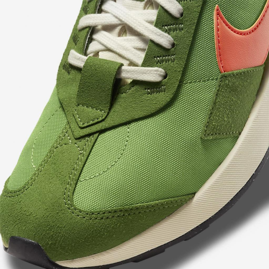 Overdelen, der er inspireret af klassiske løbesko, har en stor retro-Swoosh, syede stafferinger med retro-look og en blanding af materialer.