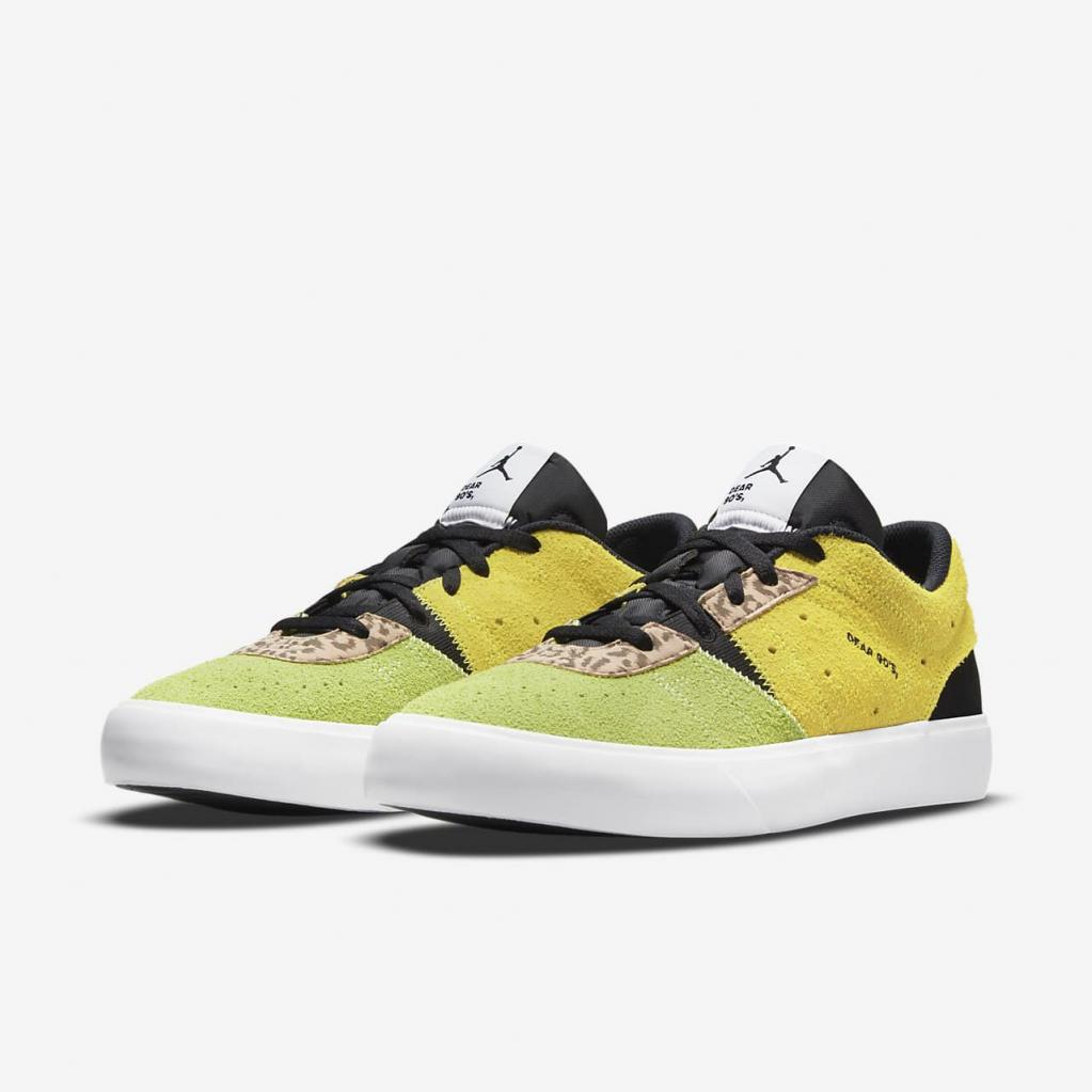 Dette er den første vulkaniserede sko fra Jordan Brand.Ligesom klassiske skatersko har den rene, høje sider, der er viklet dobbelt omkring tåen, hvilket giver ekstra slidstyrke.