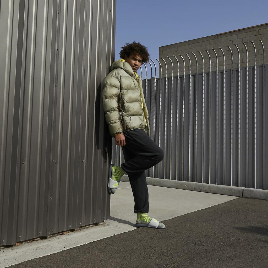 Nike Victori One perfektionerer et klassisk musthave-design, der er perfekt fra alt til stranden til de billige langsider. Den giver letvægtskomfort, der er nem at have på, og er opdateret med et blødere, mere responsivt skum. Det konturerede grebsmønster hjælper med at holde din fod på plads, mens den nye, polstrede strop føles lige så god, som den ser ud.