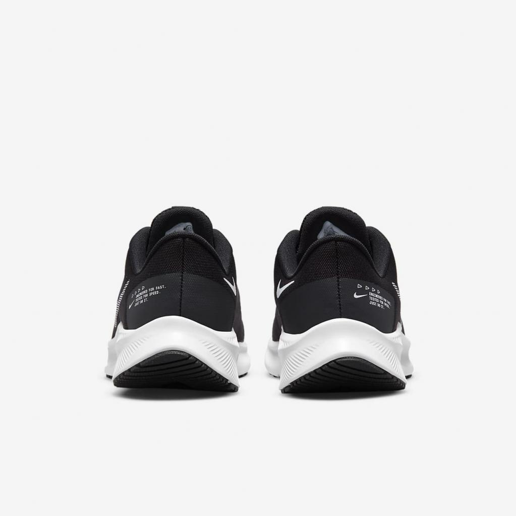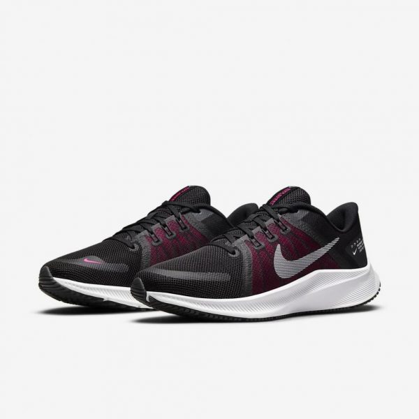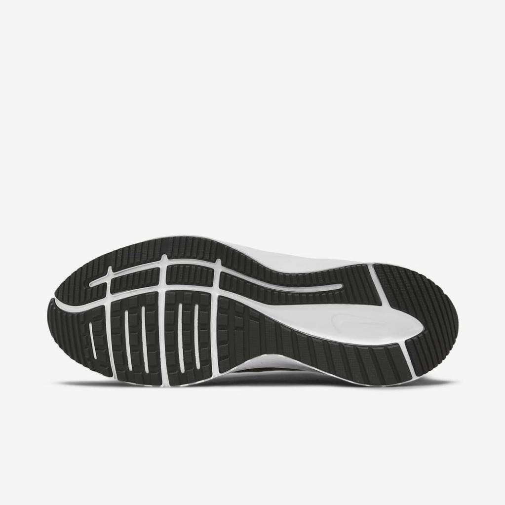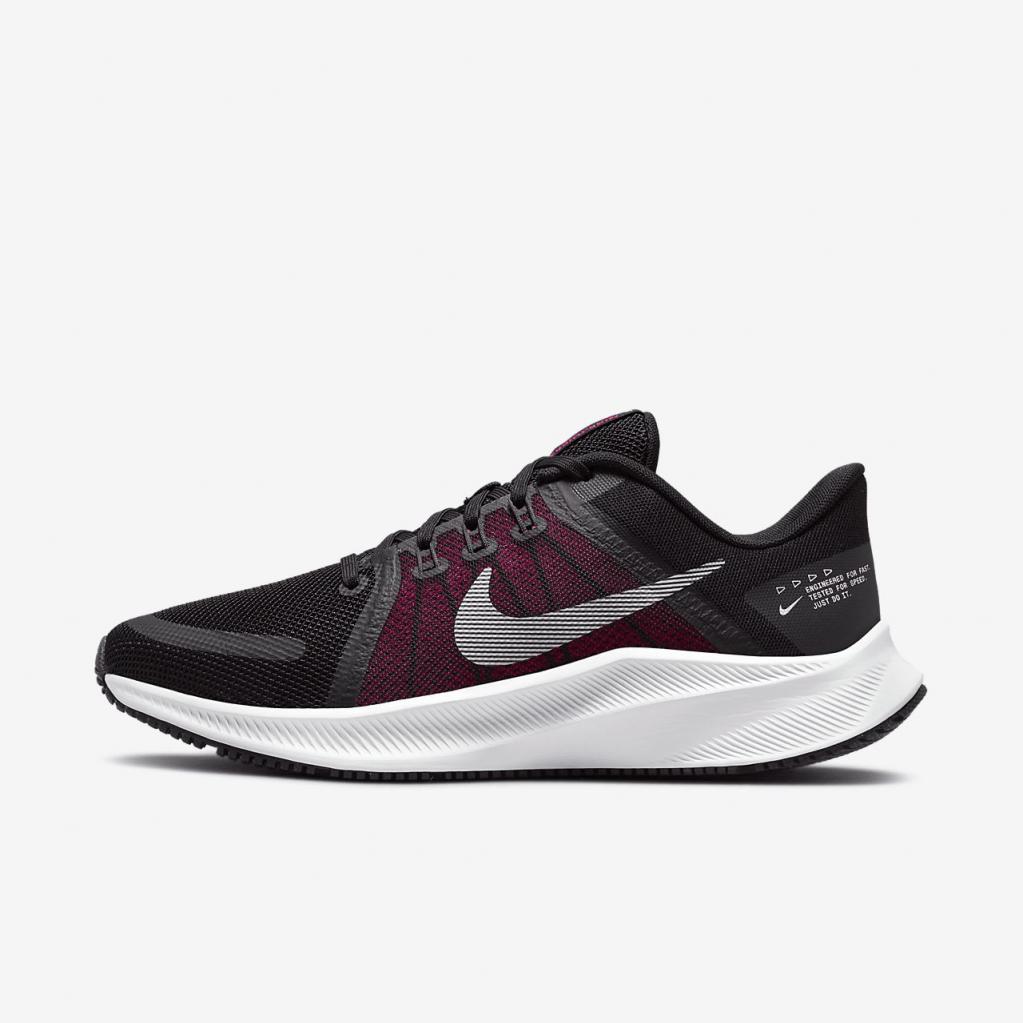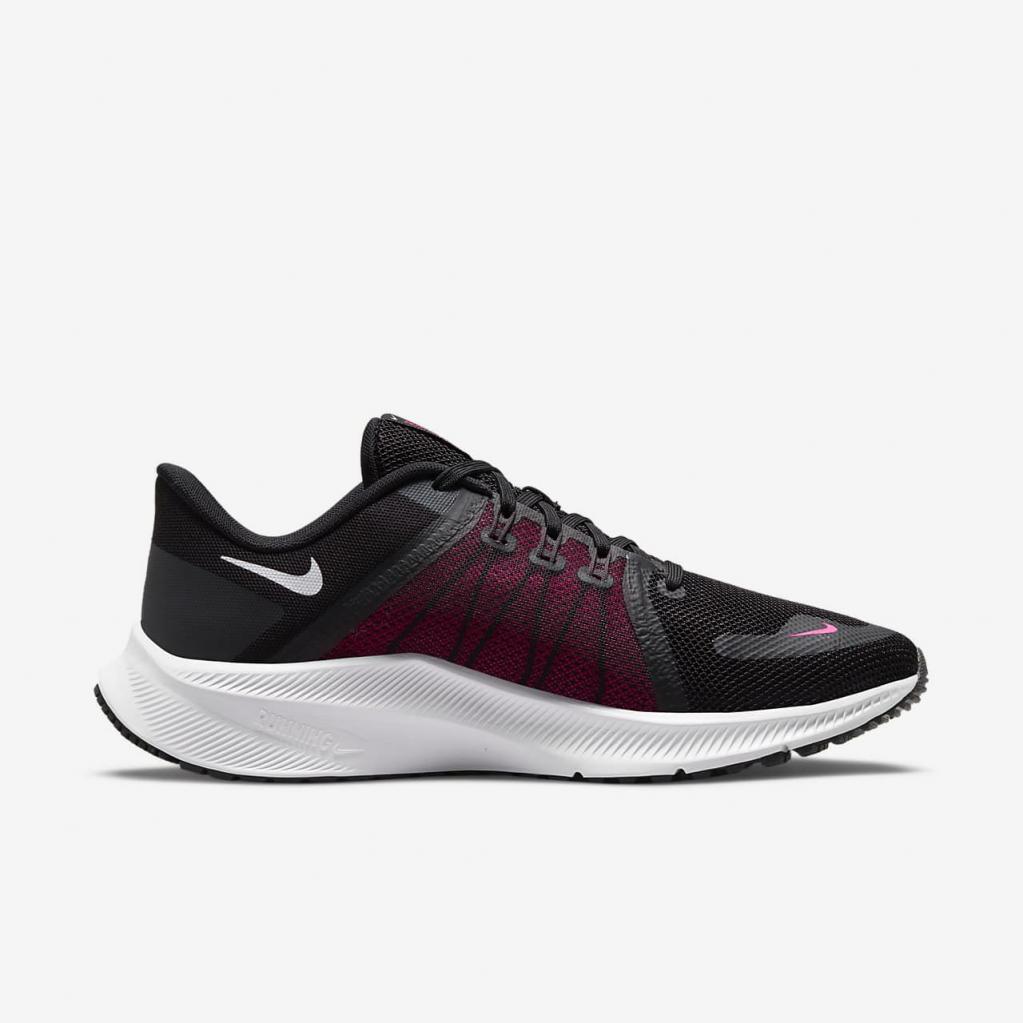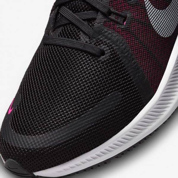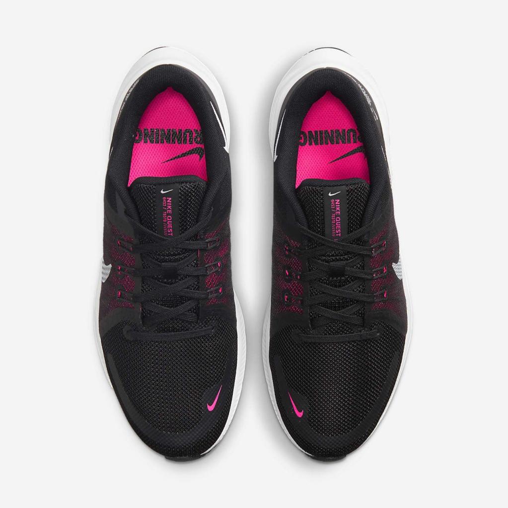 Den meshforede pløs er forbundet med overdelens indvendige for, hvilket giver en sikker fornemmelse. På et alfanumerisk logo på pløsen står der Nike Quest.